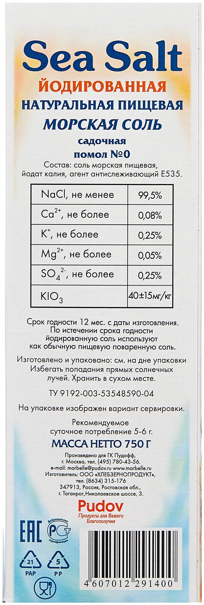 Сервис сравнения цен СкидкаГИД предлагает сравнить цены на товар «Соль морская Marbelle йодированная мелкая 750 г Marbellе»