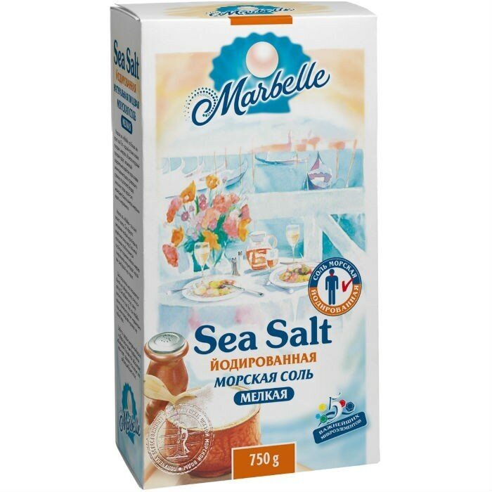 Соль морская Marbelle йодированная мелкая 750 г Marbellе