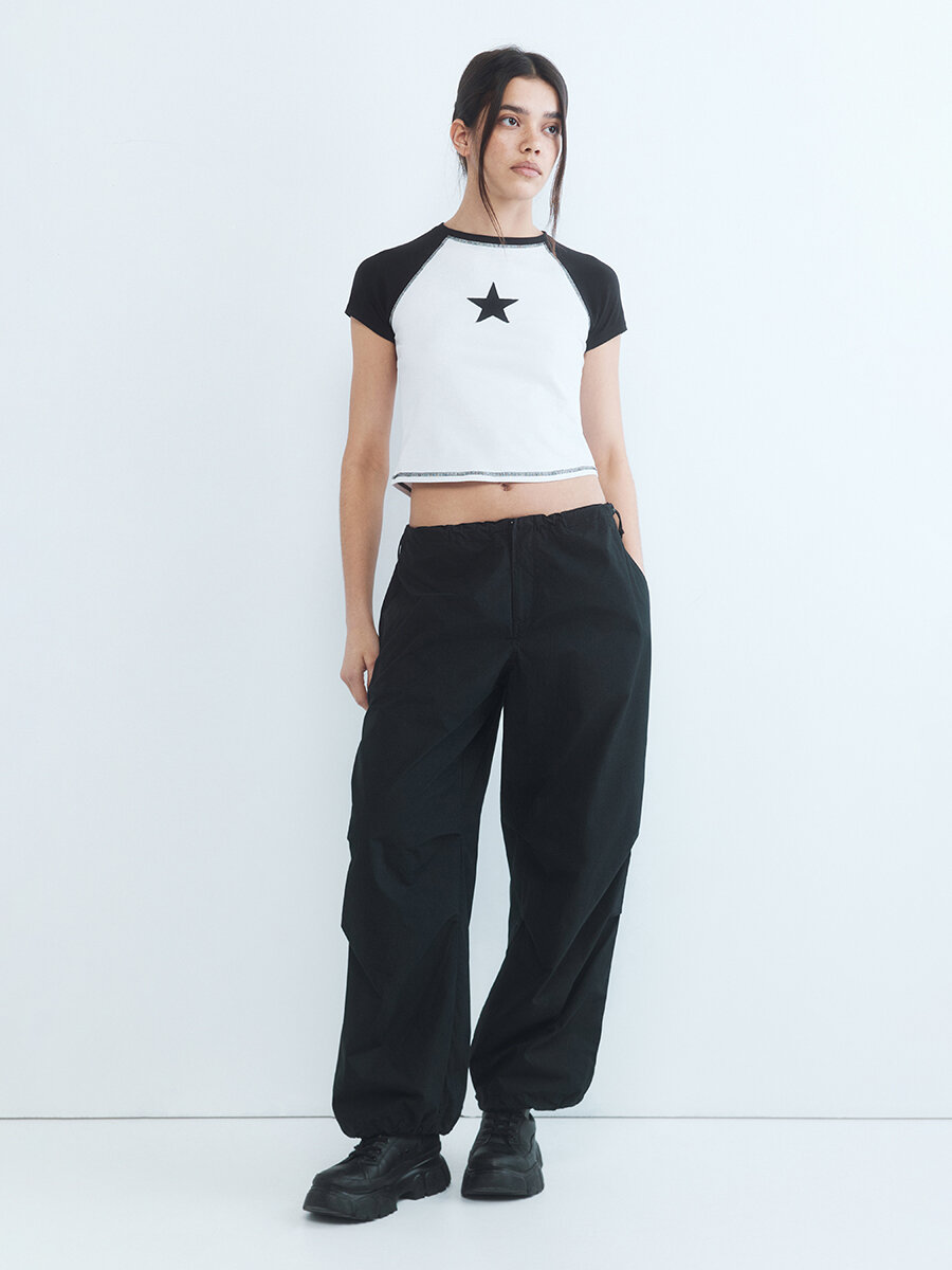 - Свободные брюки-парашюты - тренд этой весны. Парашюты из новой коллекции подойдут для расслабленных повседневных луков с твоими любимыми майками, футболками или рубашками, в которых тебе будет максимально удобно. Идеальный вариант для создания образов в стиле Y2K с короткими футболками, майками, жилетками и твоими любимыми топами. Практичные брюки идеально подойдут к стилю гранж и впишутся в самый дерзкий и свободный гардероб. Трендовые широкие брюки-парашюты для тех, кто привык к свободе в каждом движении