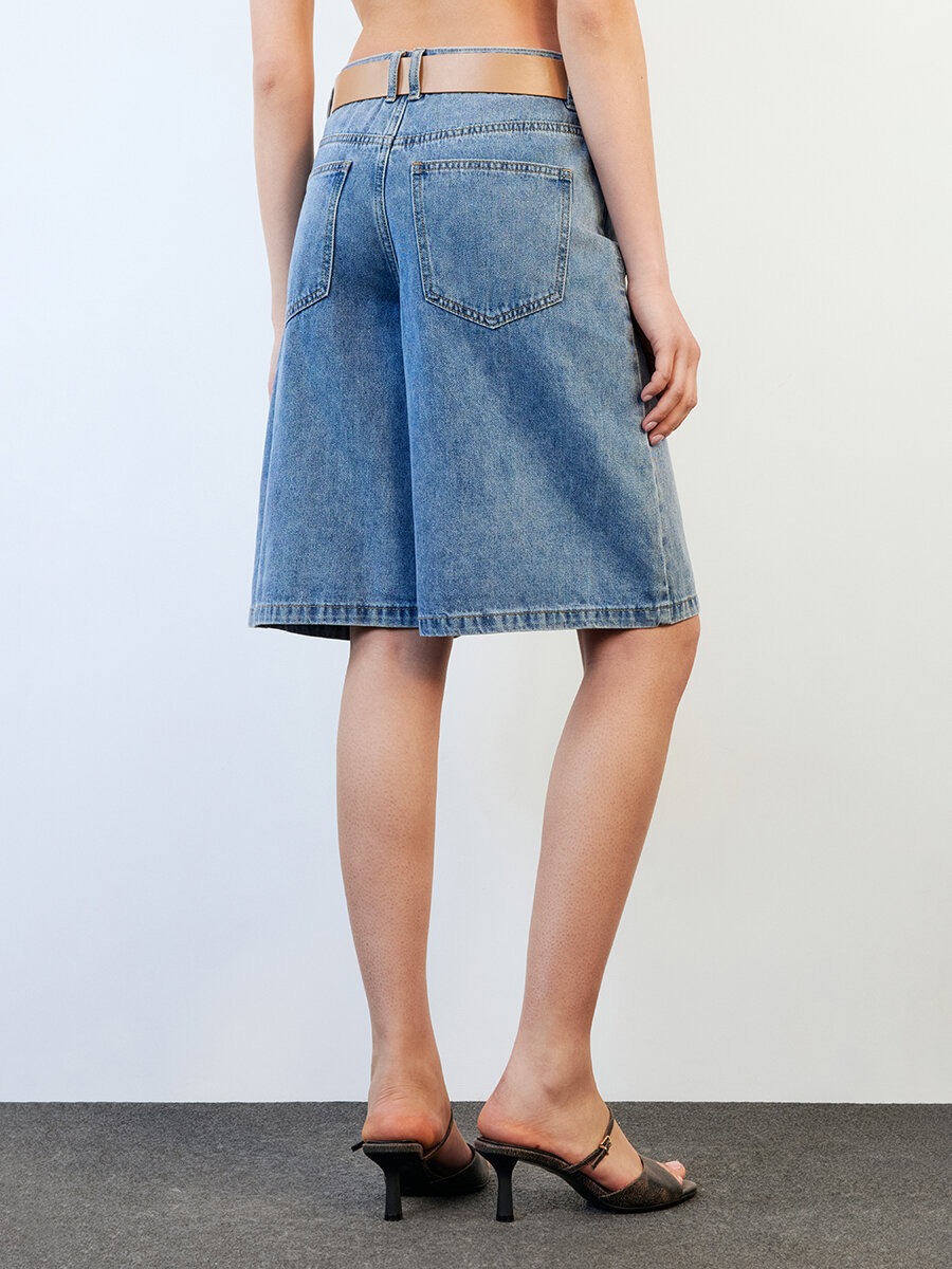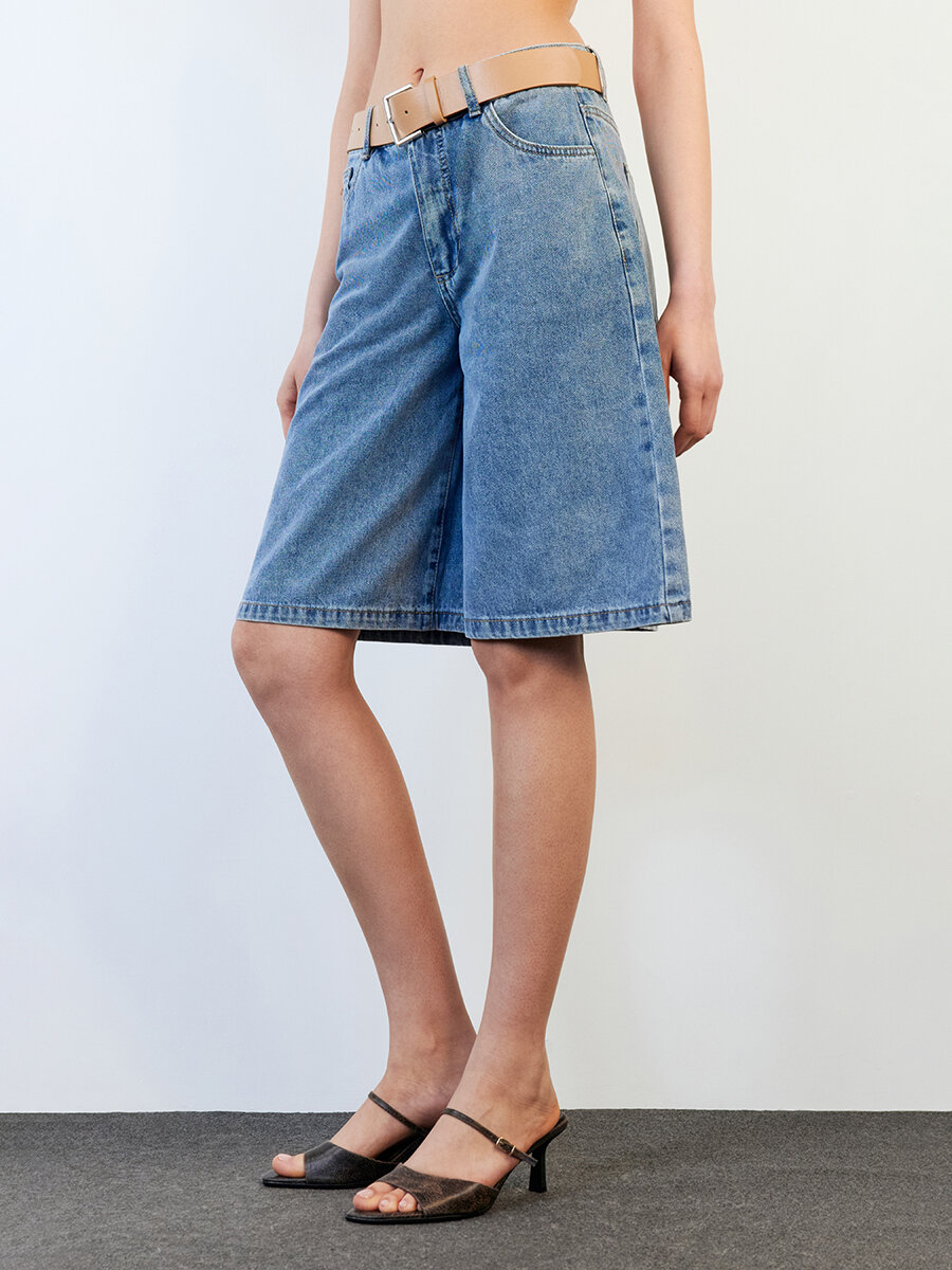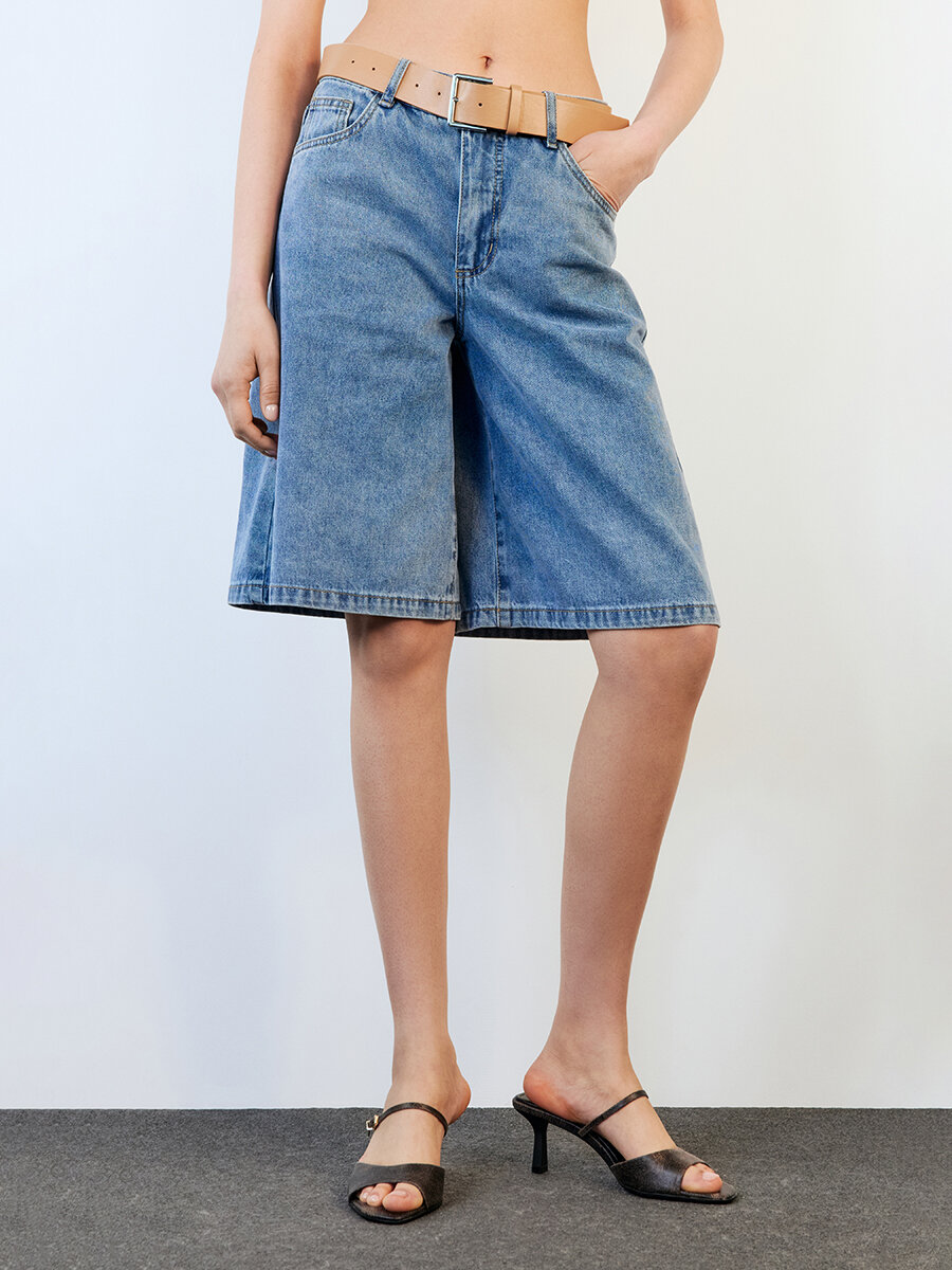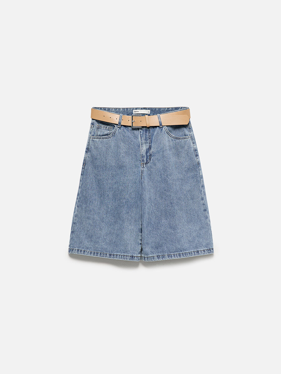 - Шорты-бермуды джинсовые широкие с ремнем. Женские джинсовые бриджи из легкого и очень приятного к телу денима на основе хлопка