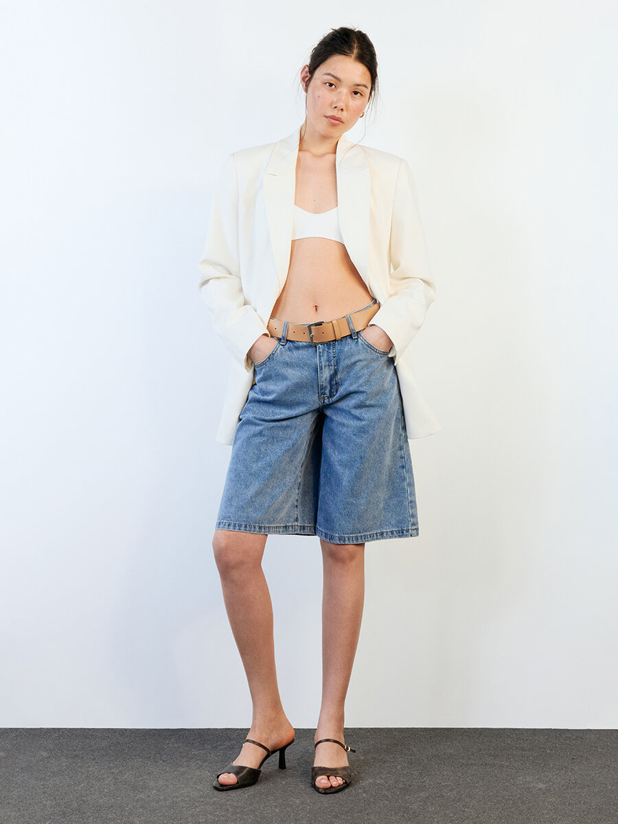 - В тренд Y2K возвращаются бриджи. Стильные и очень удобные джортсы с высокой посадкой и ремнем идеально сочетаются с любыми топами, майками, футболками и рубашками и составят отличную основу твоего весенне-летнего гардероба. Сочетай джинсовые бермуды с костюмной жилеткой на голое тело, следуя трендам этого лета. Универсальные и практичные джинсовые шорты, с которыми можно составить несчетное количество аутфитов в любом стиле и под любое настроение