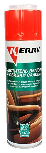 **Очиститель обивки салона пенный Kerry KR-977** — эффективное средство, обеспечивающее тщательный уход за текстильными элементами сидений, потолков, дверей и ковриков транспортного средства. Создает обильную пену, которая за счет особой формулы способна справиться даже со сложными загрязнениями. Активные компоненты проникают глубоко в структуру ткани, не нарушая фактуры покрытия. Кроме того, состав помогает восстановить цвет обивки ковров на ворсовой основе, тканей и велюра. После нанесения оставляет легкий приятный аромат. Перед применением баллон нужно тщательно встряхнуть.