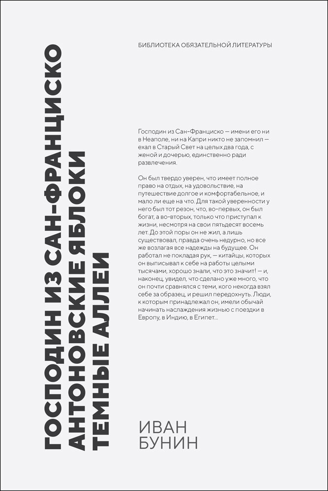 Иван Алексеевич Бунин - писатель, поэт, публицист, первый русский лауреат Нобелевской премии по литературе (1933 г.). В книгу вошли рассказы "Господин из Сан-Франциско", "Антоновские яблоки", сборник "Темные аллеи". В творческом наследии И. А. Бунина остается немало противоречивого и многозначного, однако его книги и в наше время не утратили актуальности. Данные произведения входят в обязательную программу среднего и среднего профессионального образования. Предназначено для широкого круга читателей.