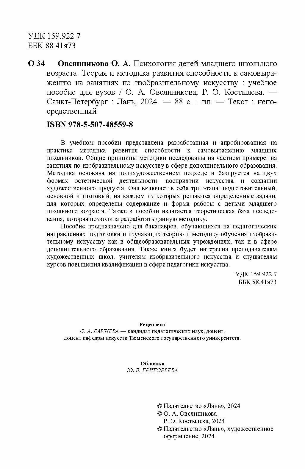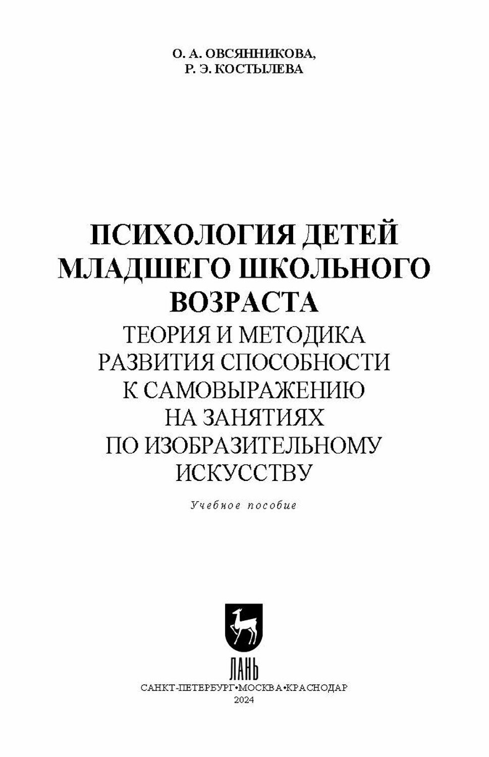 Психология детей младшего школьного возраста. Теория и методика развития способности к самовыражению (Костылева Руслана Эдуардовна, Овсянникова Оксана Александровна); Лань, 2024