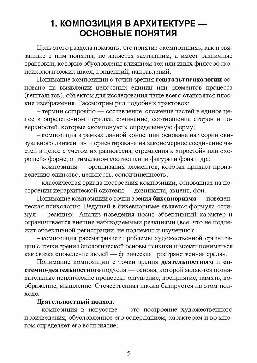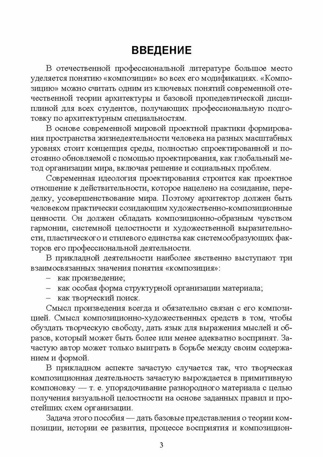 В пособии изложены базовые представления о композиции в архитектуре: история развития, основные термины, виды композиции, композиционные средства. Даны примеры композиционного моделирования и макетирования при разработке архитектурных проектов. Изложена методика композиционного подхода к учебному архитектурному проектированию несложных объектов. Учебное пособие предназначено для студентов вузов, обучающихся по направлениям «Архитектура», «Градостроительство», «Дизаи?н архитектурнои? среды».