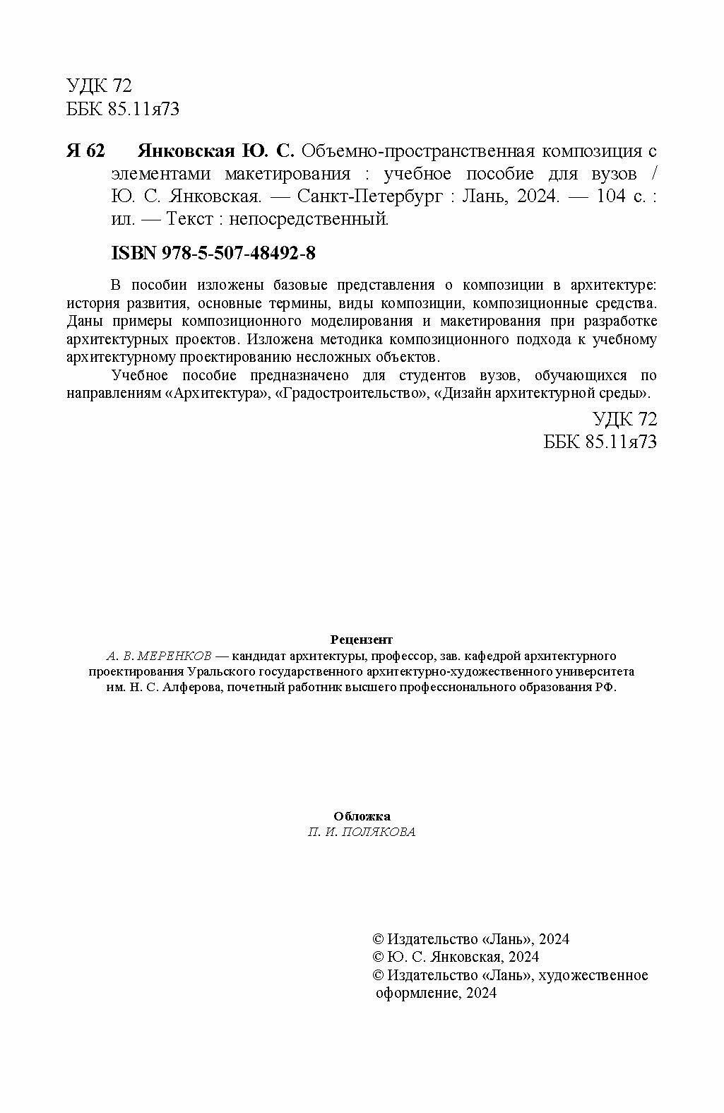Объемно-пространственная композиция с элементами макетирования. Учебное пособие (Юлия Янковская); Издательство ЛАНЬ, 2024