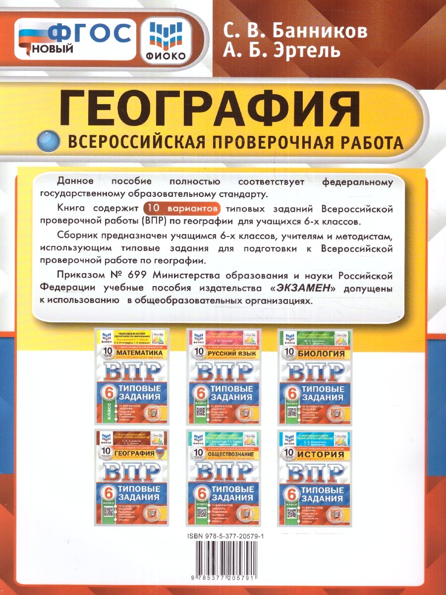 ВПР ФИОКО. География. 6 класс. Типовые задания. 10 вариантов. ФГОС (Банников Сергей Валерьевич, Эртель Анна Борисовна); Экзамен, 2025