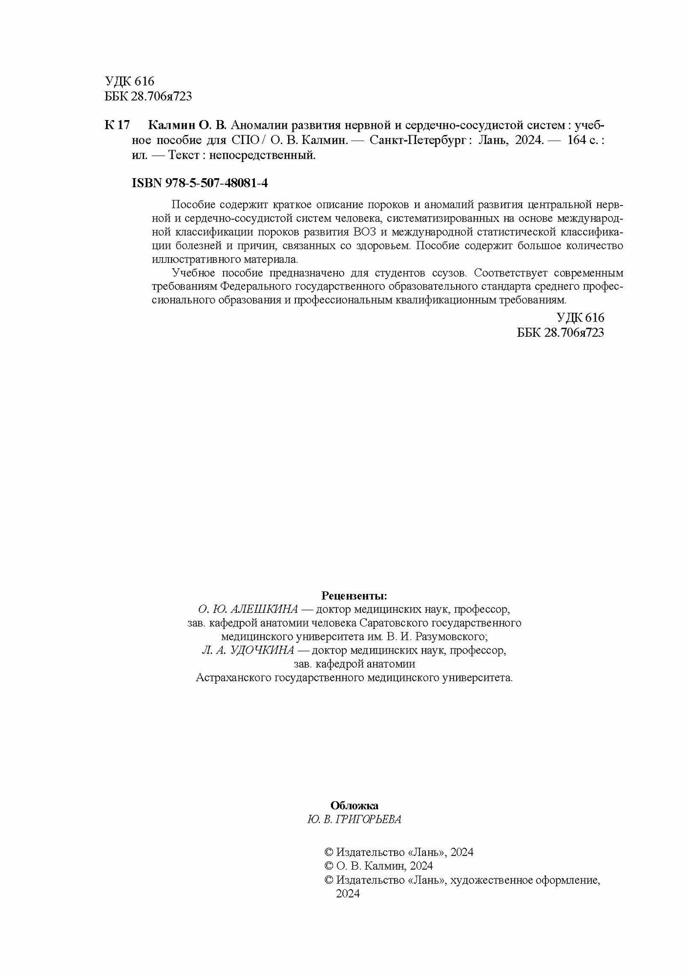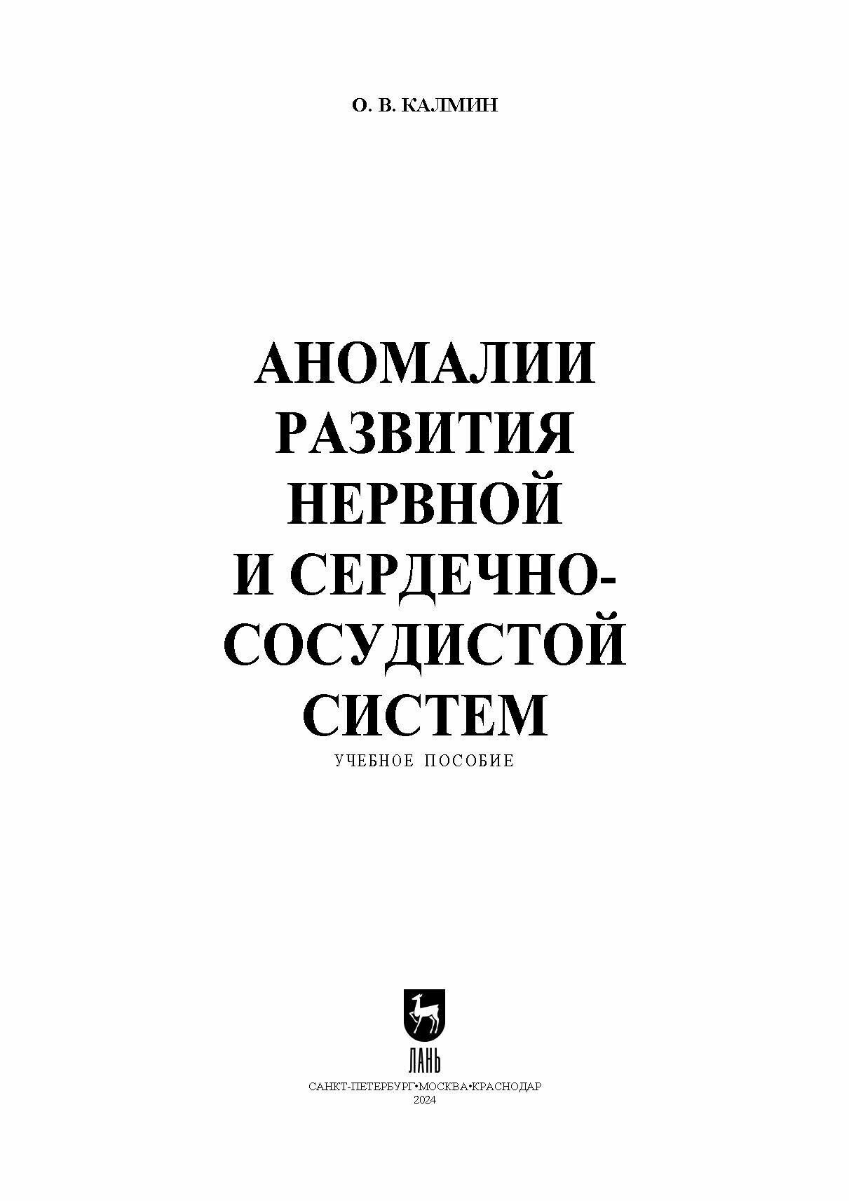 Аномалии развития нервной и сердечно-сосудистой систем. Учебное пособие для СПО (О. В. Калмин); Издательство ЛАНЬ, 2024