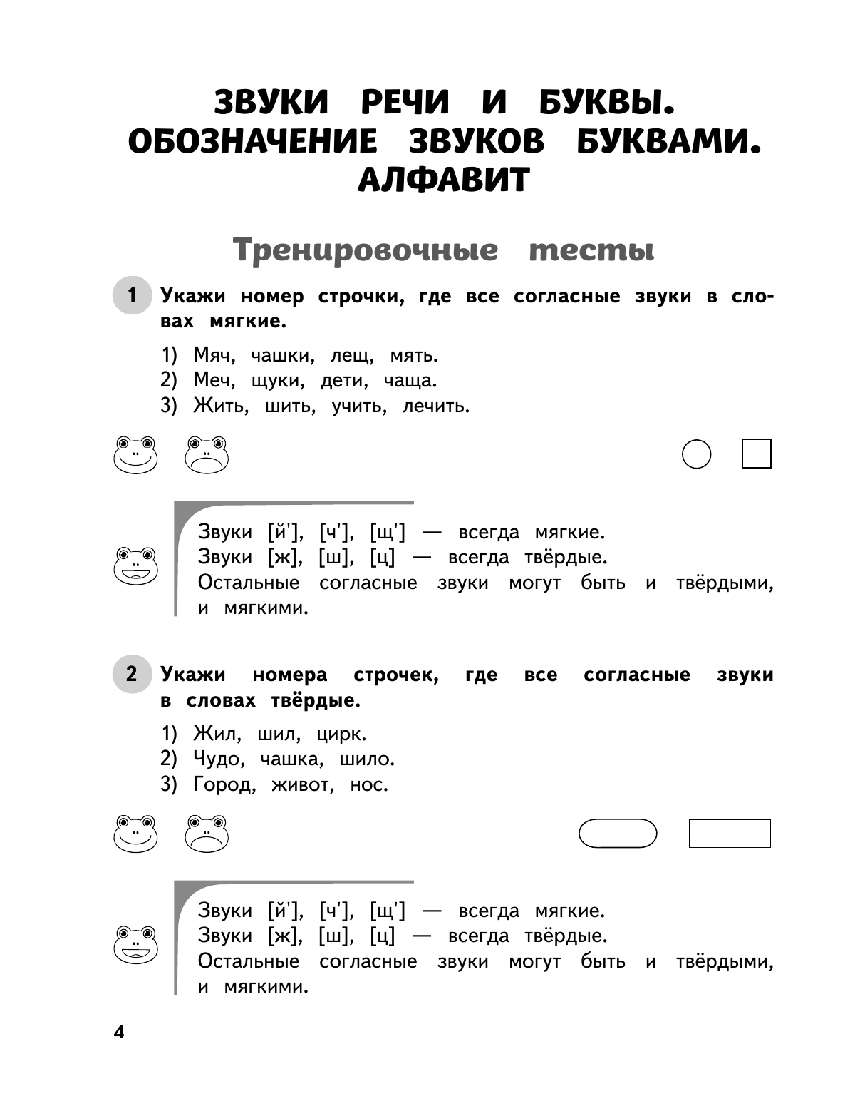 Тренажеры содержат тесты по важнейшим предметам начальной школы - математике и русскому языку. По каждой теме предлагается два вида тестов - тренировочные и проверочные. Выполняя тренировочные тесты, младшие школьники смогут не только выяснить свой уровень усвоения учебного материала, но и оперативно получить краткие и понятные разъяснения по проблемным темам. Эти подсказки ориентируют учеников на выбор нужного правила и дают прямые указания на верный способ выполнения задания. Проверочные тесты с ответами в конце книги выполняют контрольную функцию. Сборник тестов разработан с учетом всех требований ФГОС начального общего образования.