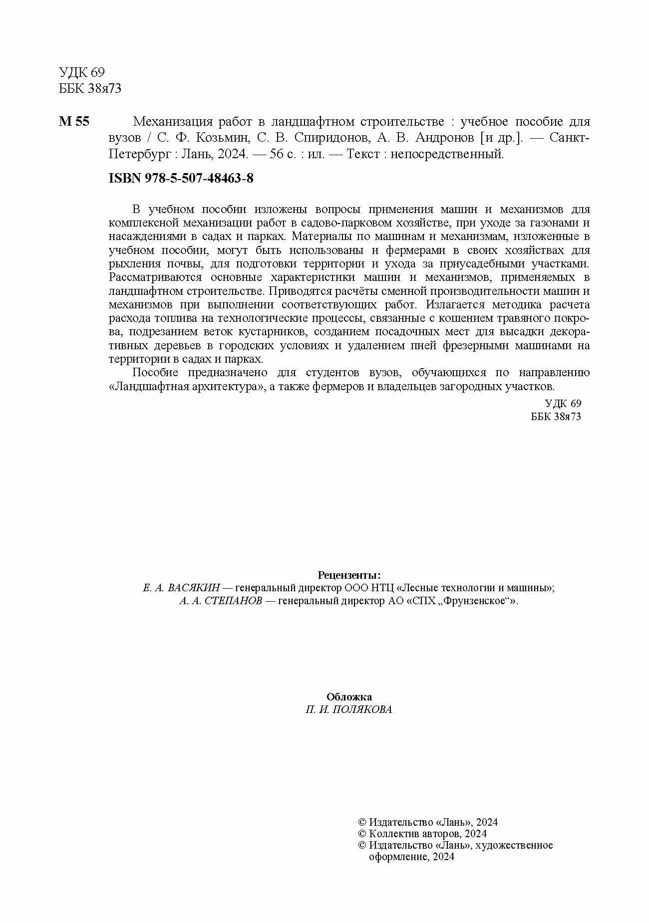 Механизация работ в ландшафтном строительстве. Учебное пособие для вузов (С. Ф. Козьмин); Издательство ЛАНЬ, 2024
