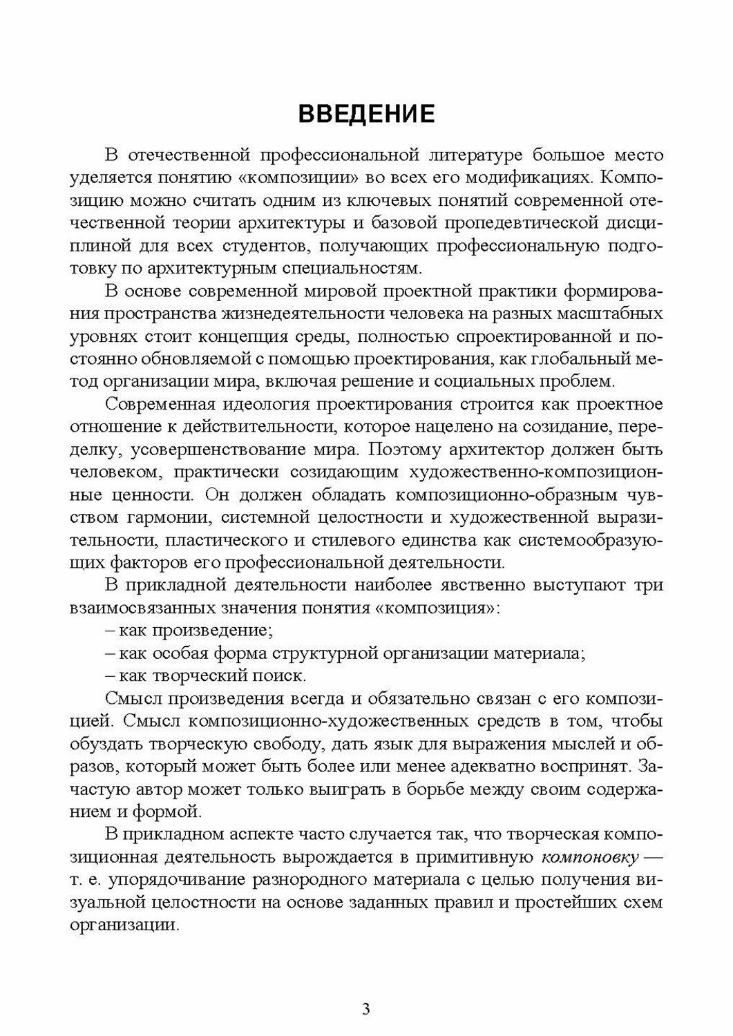 Изложены базовые представления о композиции в архитектуре: история развития, основные термины, виды композиции, композиционные средства. Даны примеры композиционного моделирования и макетирования при разработке архитектурных проектов. Изложена методика композиционного подхода к учебному архитектурному проектированию несложных объектов. Соответствует современным требованиям ФГОС СПО и профессиональным квалификационным требованиям. Адресовано студентам направления СПО «Архитектура», осваивающих МДК 01.02 «Объемно-пространственная композиция с элементами макетирования».