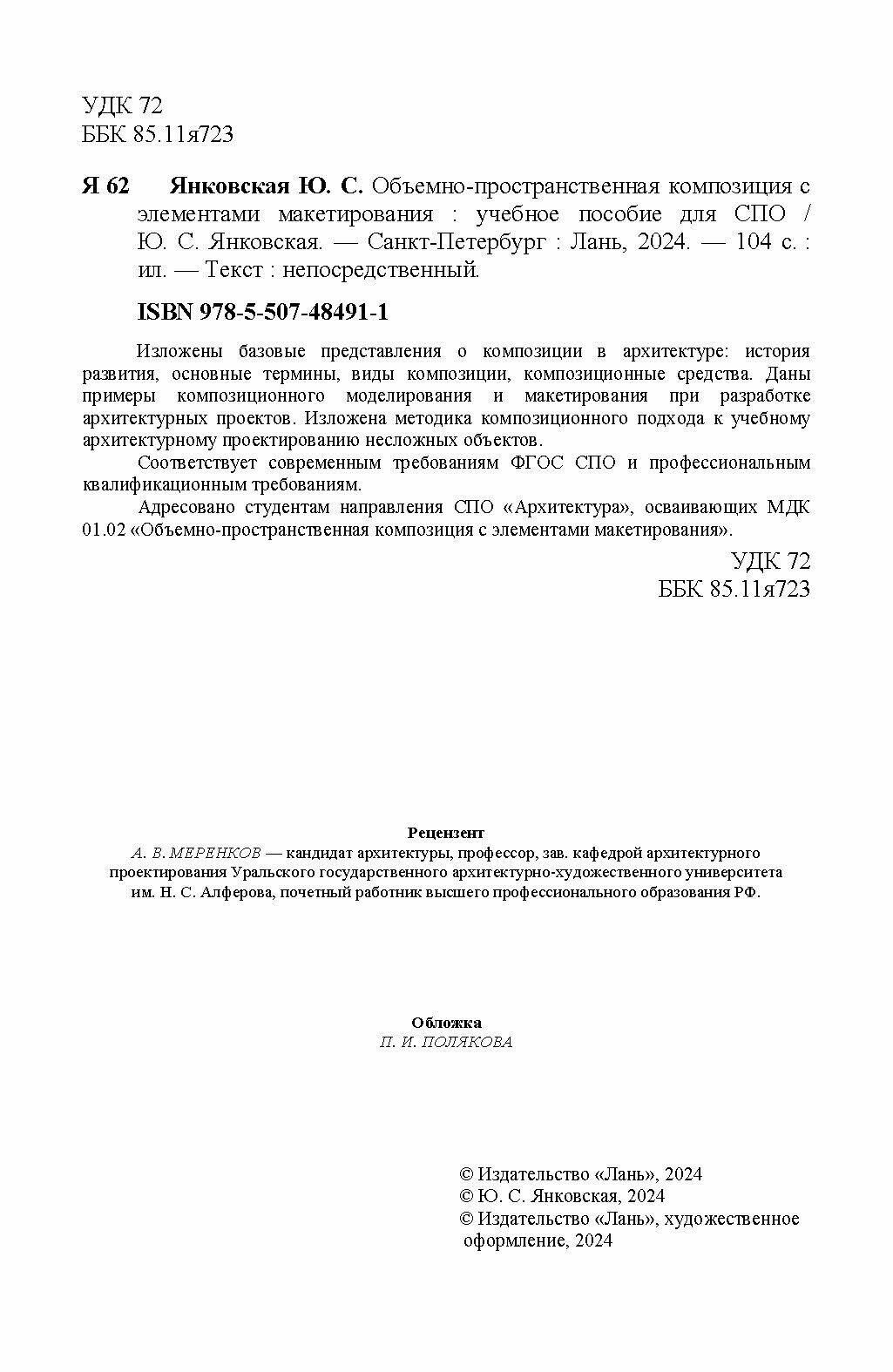 Сервис сравнения цен СкидкаГИД предлагает сравнить цены на товар «Книга: Объемно-пространственная композиция с элементами макетирования. Учебное пособие для СПО (Юлия Янковская); Издательство ЛАНЬ, 2024»