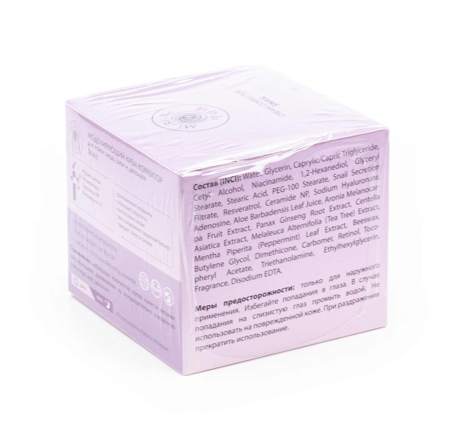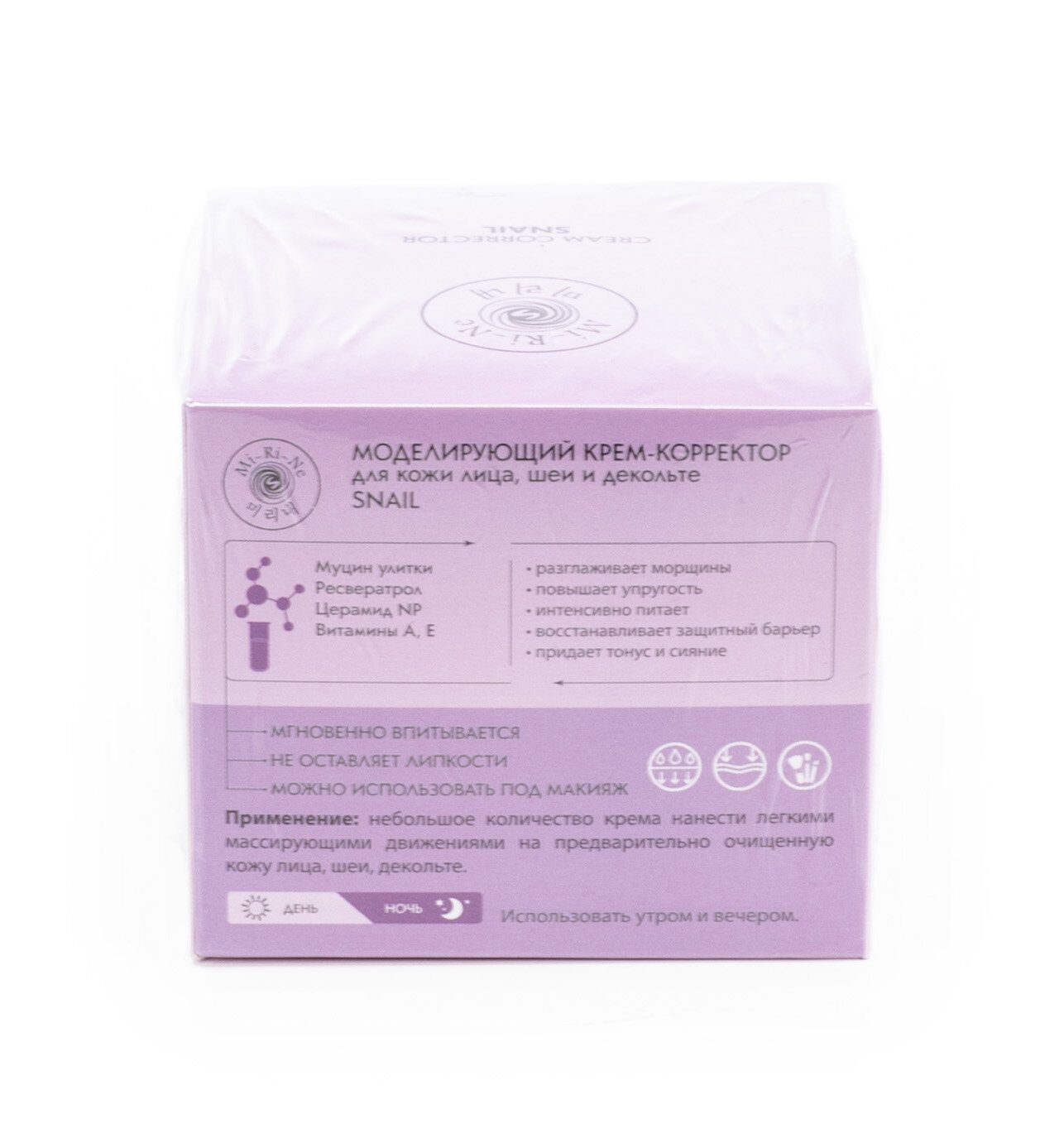 Наша кожа, подобно всему организму, нуждается в увлажнении и питании. Об этом может позаботиться крем для лица Mi-Ri-Ne с муцином улитки. Крем для ухода за кожей специально разработан для использования в дневное и ночное время суток. Крем-корректор разглаживает морщины, повышает упругость, интенсивно питает, восстанавливает защитный барьер, придает коже тонус и сияние. В составе крема содержатся муцин улитки, ресвератрол, церамид NP, витамины А, Е. С кремом от Mi-Ri-Ne ваша кожа будет подтянутой и сияющей! Дневной крем для лица / косметика / ночной крем для лица / уход за кожей Состав: Water, Glycerin, Caprylic/Capric Triglyceride, Cetyl Alcohol, Niacinamide, 1,2-Hexanediol, Glyceryl Stearate, Stearic Acid, PEG-100 Stearate, Snail Secretion Filtrate, Resveratrol, Ceramide NP, Sodium Hyaluronate, Adenosine, Aloe Barbadensis Leaf Juice, Aronia Melanocarpa Fruit Extract, Panax Ginseng Root Extract, Centella Asiatica Extract, Melaleuca Alternifolia (Tea Tree) Extract, Mentha Piperita (Peppermint) Leaf Extract, Beeswax, Butylene Glycol, Dimethicone, Carbomer, Retinol, Tocopheryl Acetate, Triethanolamine, Ethylhexylglycerin, Fragrance, Disodium EDTA.