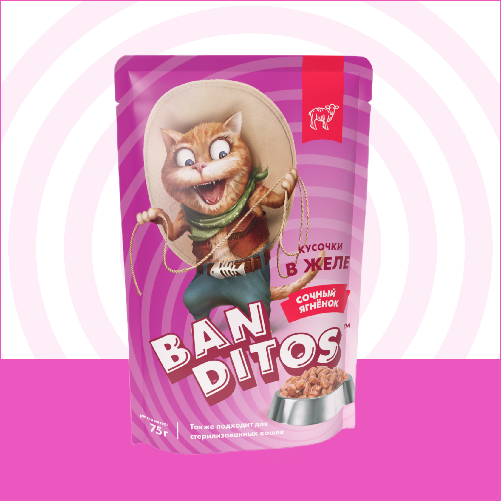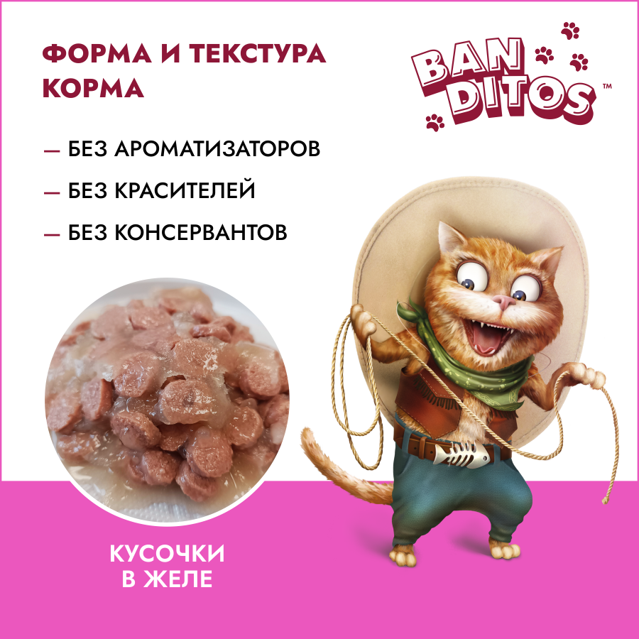 Влажный корм для взрослых кошек BANDITOS с ягненком кусочки в желе 75 г