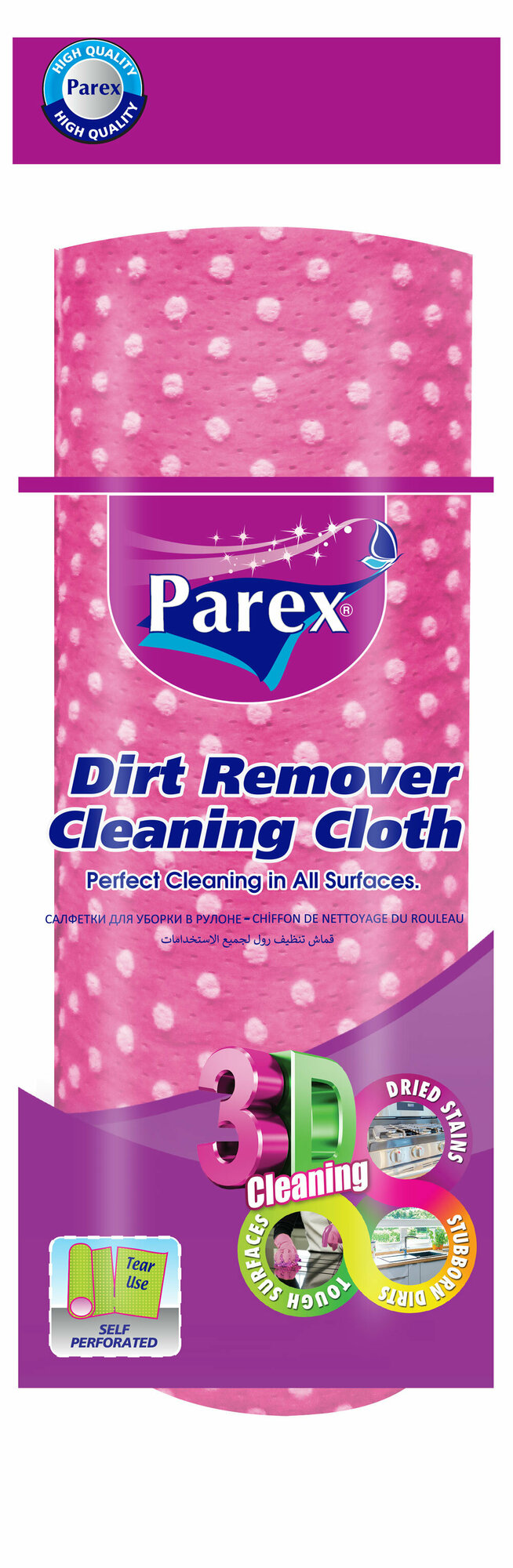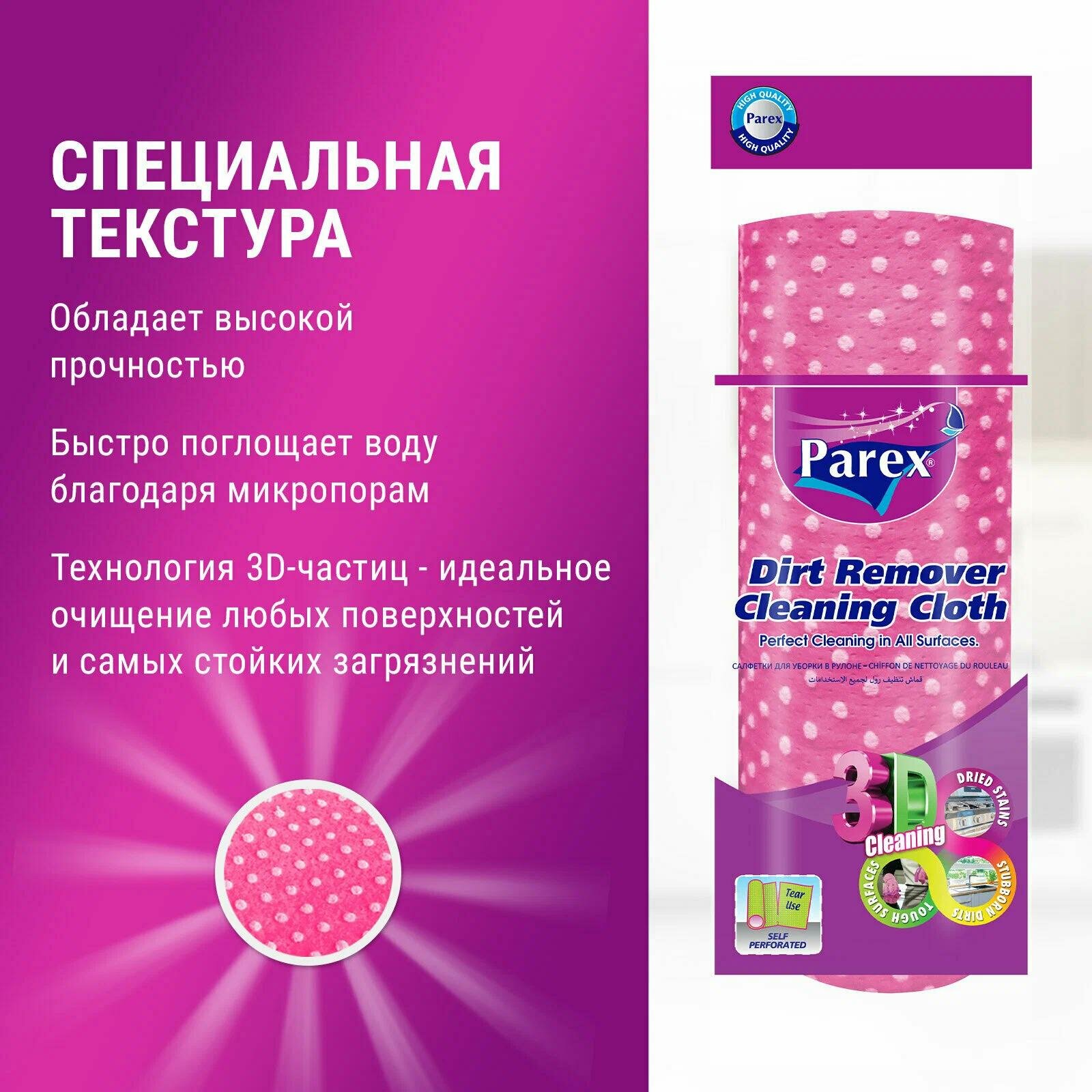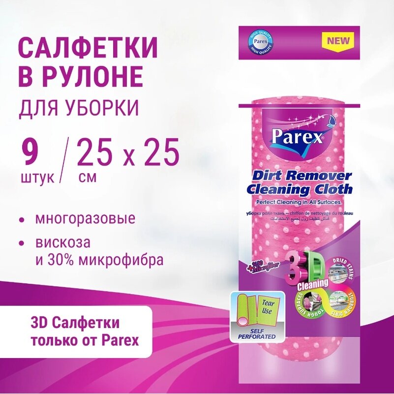 **Салфетки в рулоне Parex** используются при проведении сухой и влажной уборки в жилом или административном помещении. Не оставляют после себя разводов, ворсинок. После использования быстро сохнут.