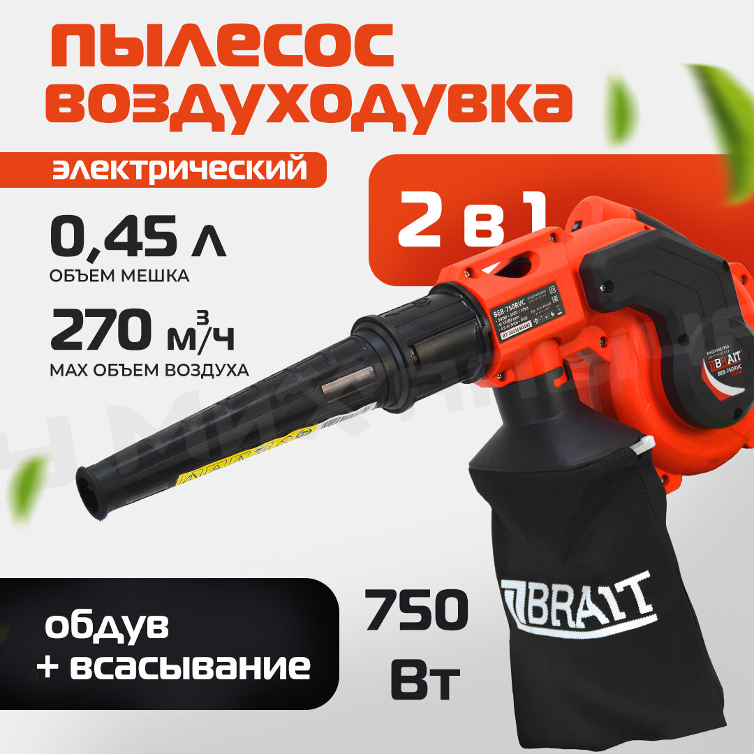 Воздуходувка Brait BEB-750RVC 750 Вт 270 м³/ч 31.01.004.049