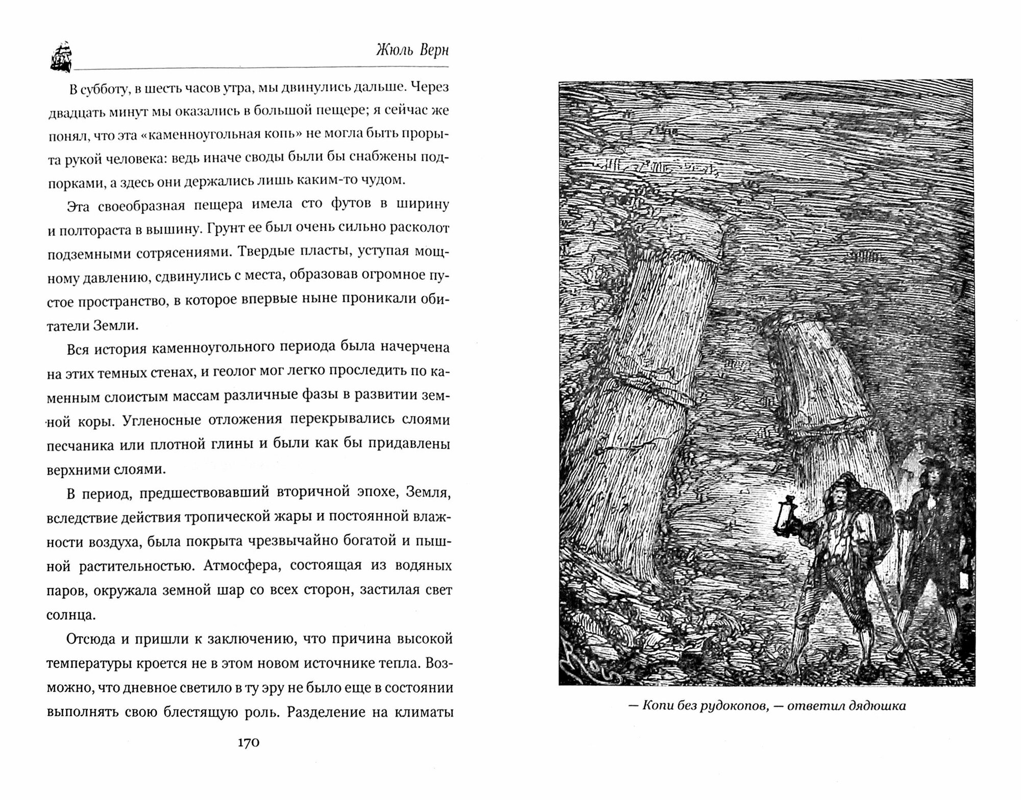 Профессор минералогии Отто Лиденброк, полиглот с бегающим взглядом и острым, как клинок, носом, знал тьму-тьмущую разных языков и умел по запаху и вкусу определить любой минерал. Но даже ему пришелся не по зубам секрет случайно обнаруженного манускрипта легендарного средневекового алхимика. Лиденброк дал клятву за себя и за своего помощника - ни есть, ни спать, пока не расшифрует загадочный документ. Но у сметливого помощника-племянника, случайно подобравшего ключ к тайне, совсем другие планы. Ибо разгадка похожа на сумасшествие. Очередной том Жюля Верна, несмотря на легкость и озорной тон повествования, поведает о полном опасностей путешествии к центру Земли.