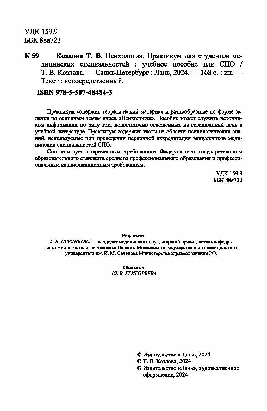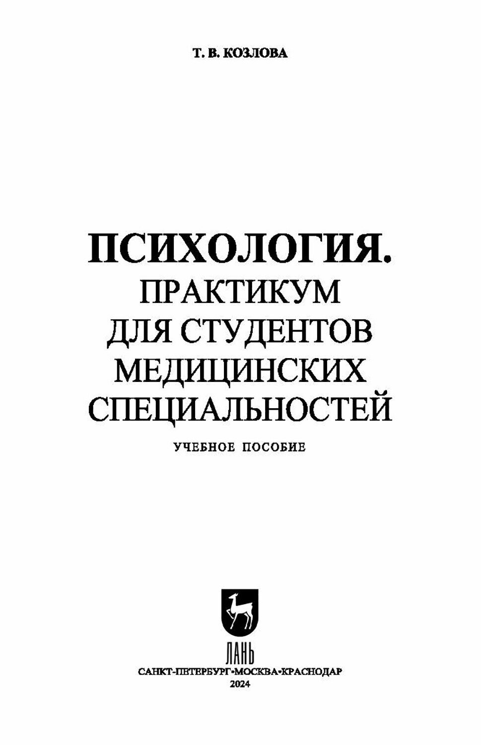 Психология. Практикум для студентов медицинских специальностей. Учебное пособие для СПО (Т. В. Козлова); Издательство ЛАНЬ, 2024