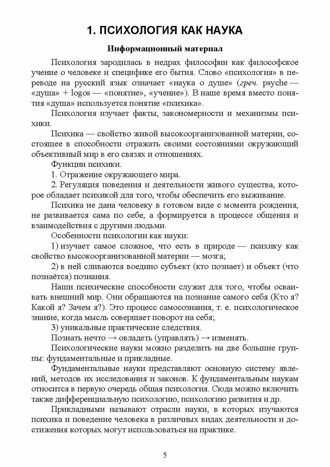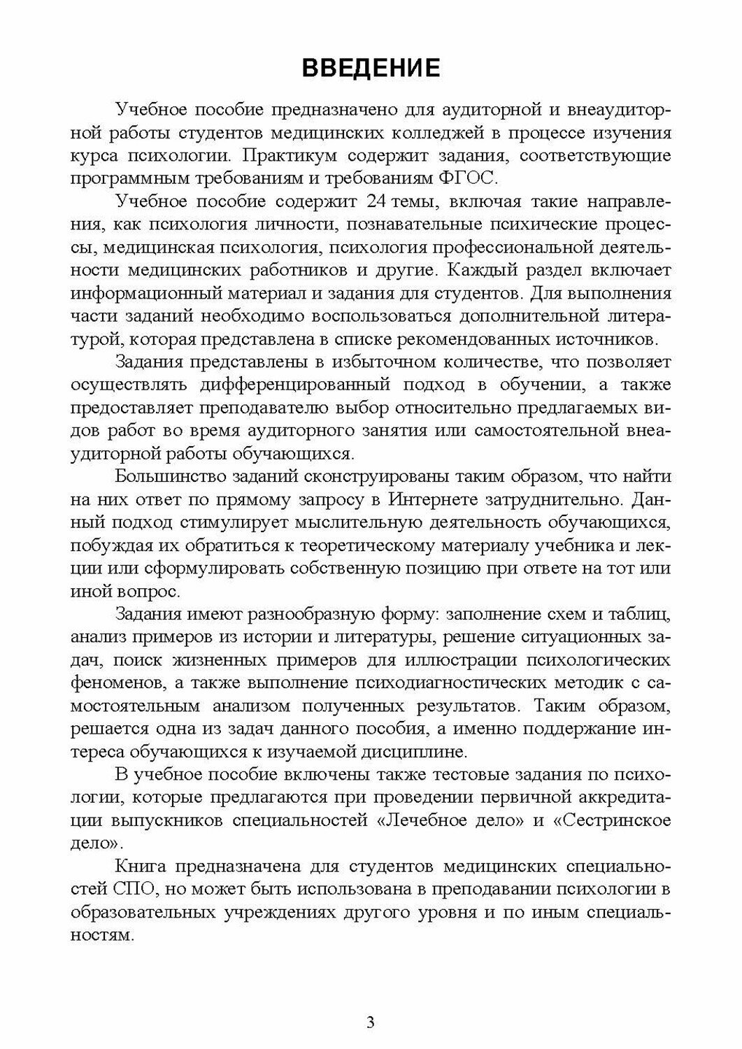 Практикум содержит теоретический материал и разнообразные по форме задания по основным темам курса "Психология". Пособие может служить источником информации по ряду тем, недостаточно освещенных на сегодняшний день в учебной литературе. Практикум содержит тесты из области психологических знаний, используемые при проведении первичной аккредитации выпускников медицинских специальностей СПО. Соответствует современным требованиям Федерального государственного образовательного стандарта среднего профессионального образования и профессиональным квалификационным требованиям.