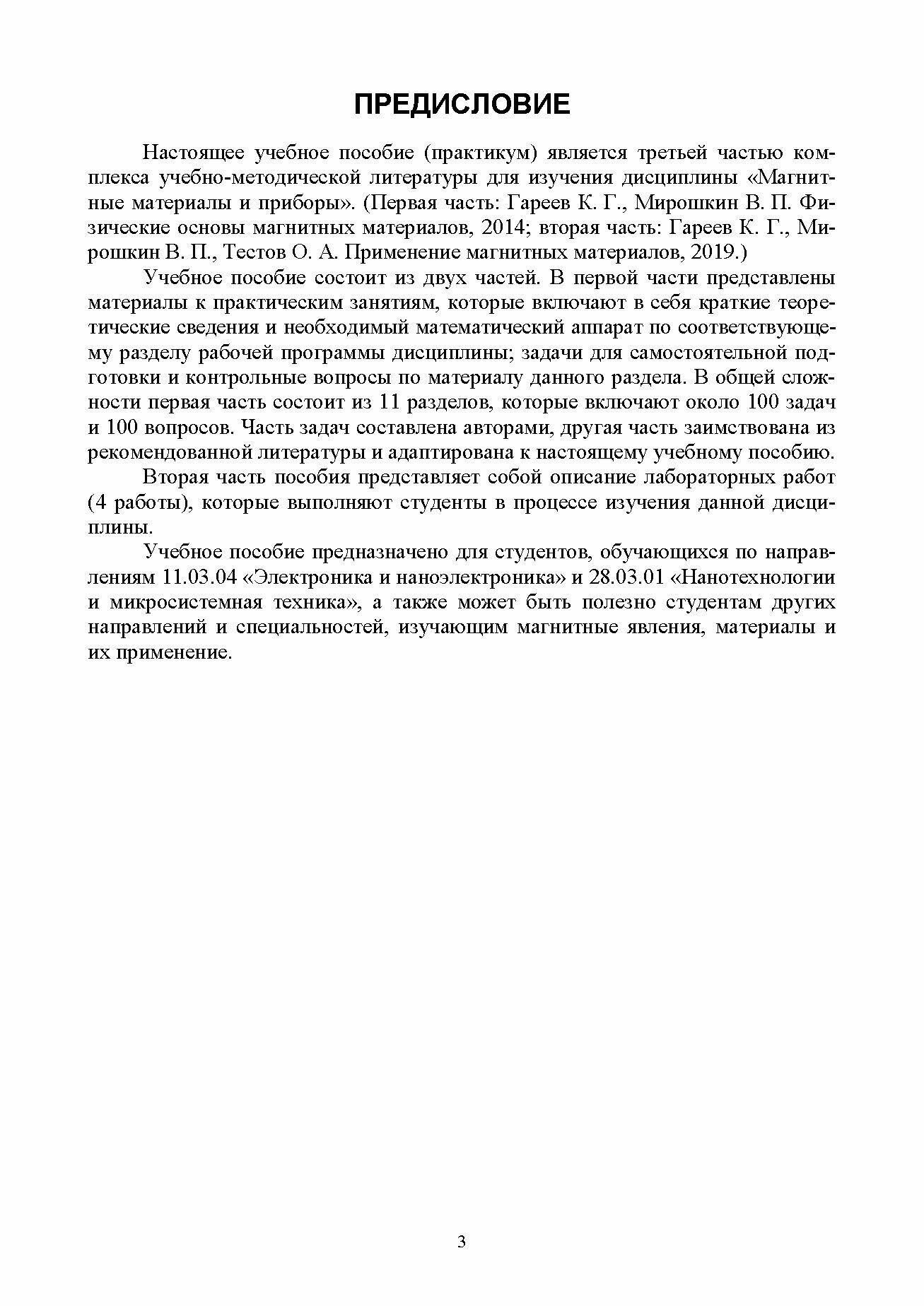 В первой части даны краткие теоретические сведения и математический аппарат, необходимый для решения задач, задачи для самостоятельной подготовки и контрольные вопросы. Вторая часть представляет описание лабораторных работ по дисциплине «Магнитные материалы и приборы». Адресовано студентам направлений «Электроника и наноэлектроника» и «Нанотехнологии и микросистемная техника», а также студентам других направлений, изучающим магнитные явления, материалы и их применение.