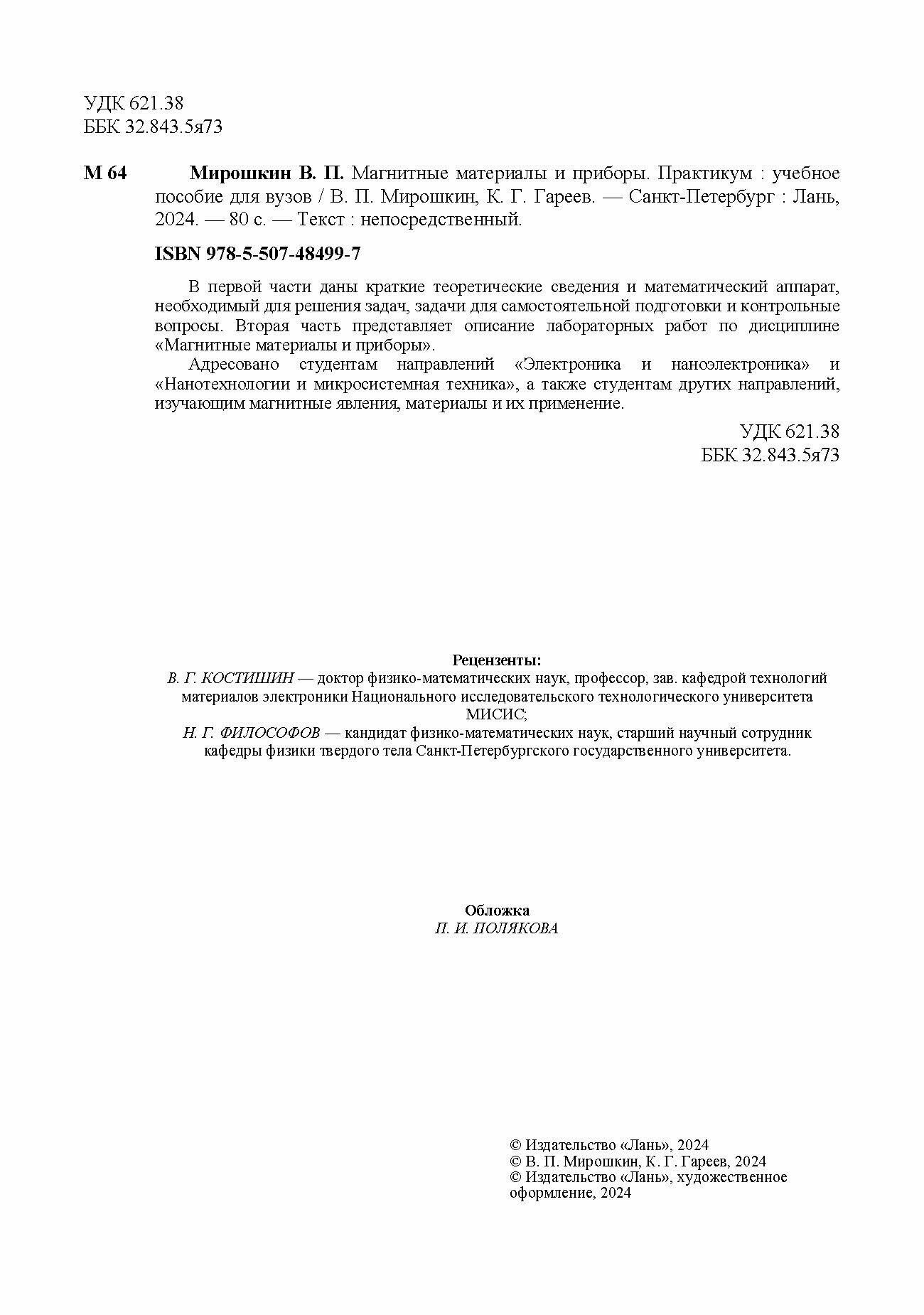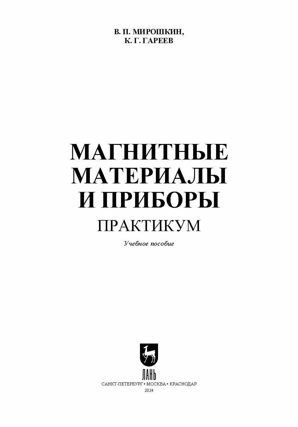 Магнитные материалы и приборы. Практикум. Учебное пособие для вузов (Мирошкин Владимир Петрович, Гареев Камиль Газинурович); Лань, 2024
