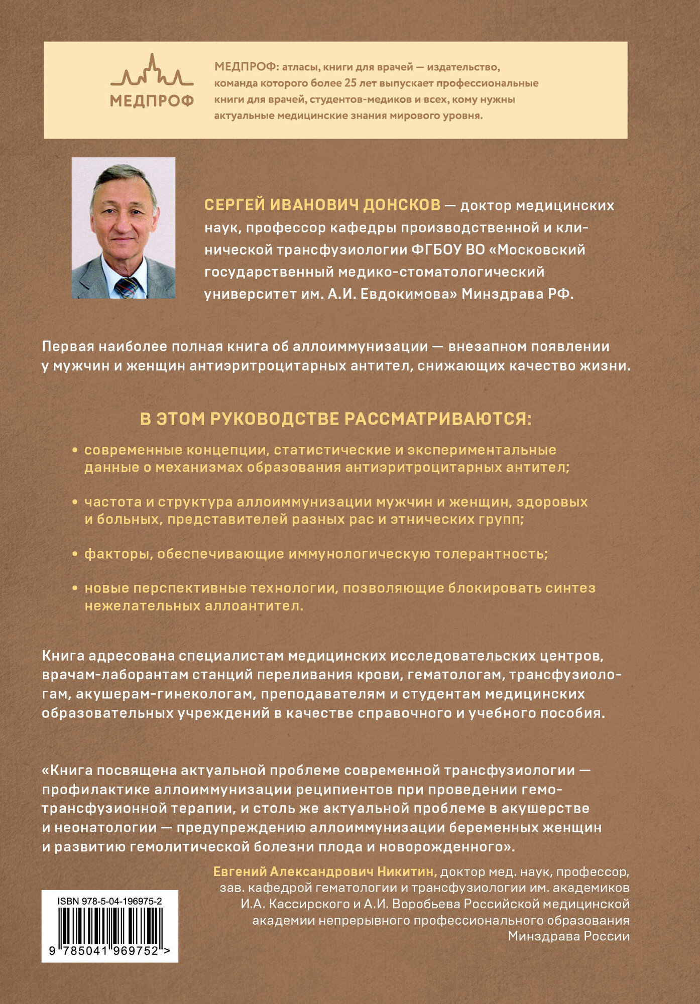Автор книги Сергей Иванович Донсков, профессор, доктор медицинских наук, пользуется непререкаемым авторитетом в медицинском сообществе. Профессор Донсков обсуждает данные о динамике показателей аллоиммунизации больных и беременных в различных регионах России и рассматривает мероприятия по повышению качества гемотрансфузионной терапии и профилактики желтухи новорожденных.