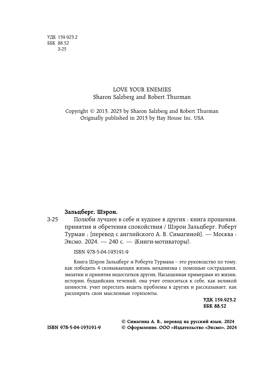 Полюби лучшее в себе и худшее в других. Книга прощения принятия и обретения спокойствия (Шерон Зальцберг, Роберт Турман); Эксмо, БОМБОРА, 2024