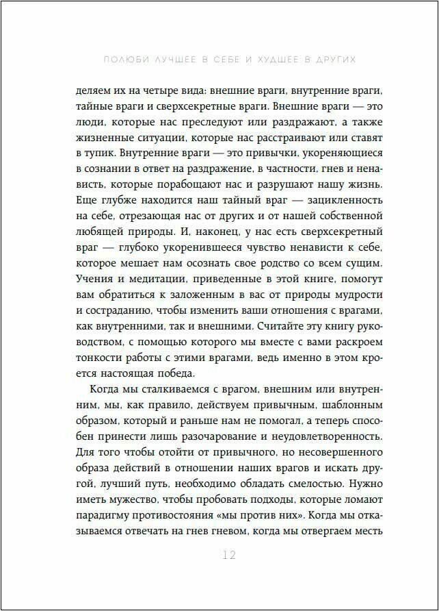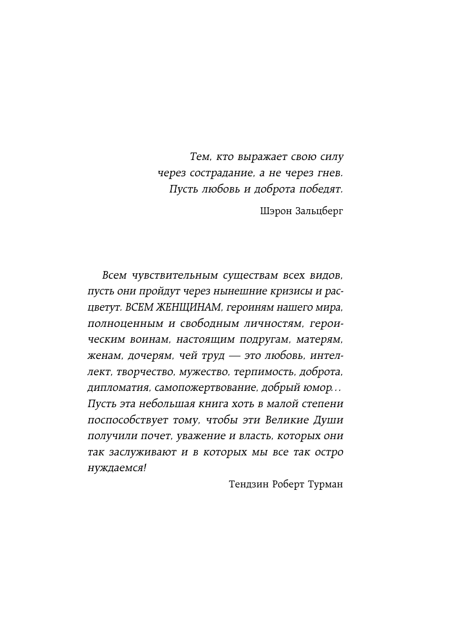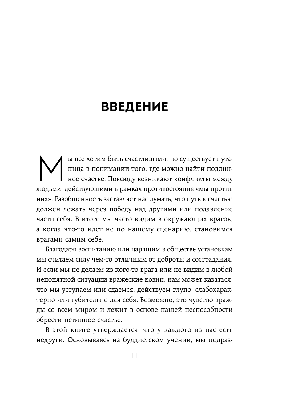 Мы часто видим врагов в окружающих. А когда что-то идет не по нашему, становимся врагами самим себе. Эта книга, написанная преподавателем медитации Шэрон Зальцберг и профессором колумбийского университета Робертом Турманом, призывает отказаться от попыток винить в проблемах других и перестать истязать себя за то, что вы раньше всех не купили недвижимость, не получили второе образование, не смогли дать детям все самое лучшее.