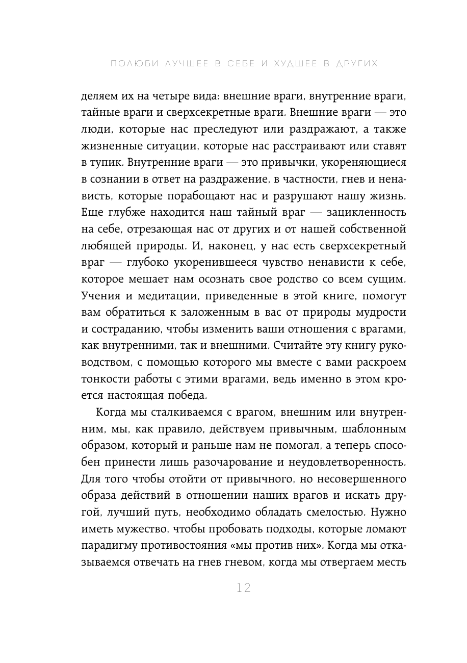 В книге вы найдете 4 типа «врагов» — тормозящих механизма, которые не дают вам избавиться от внутренних страданий из-за того, что мир не всегда добр и щедр по отношению к вам.