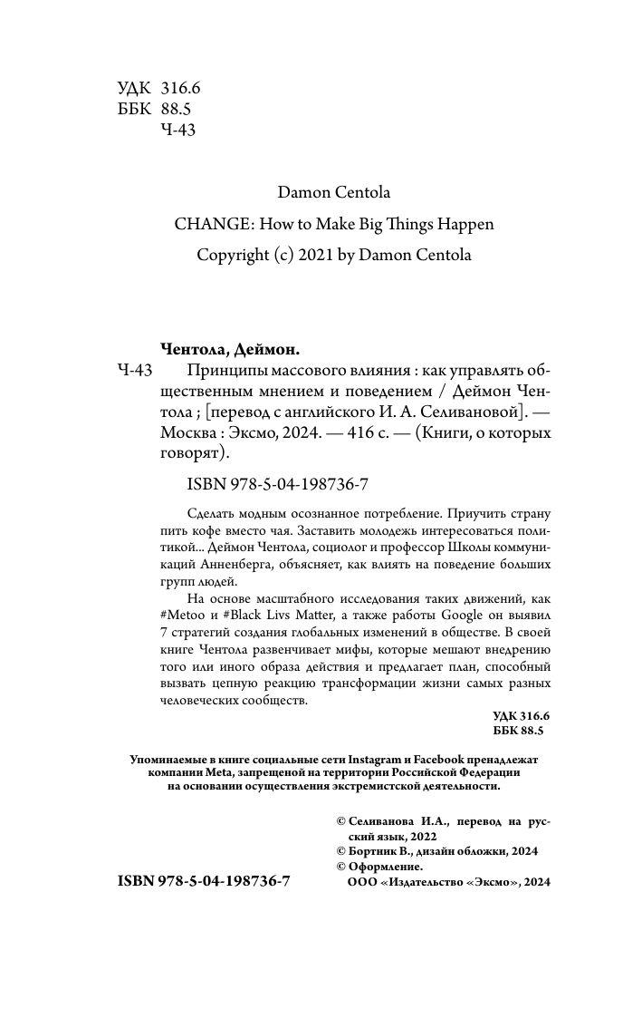 Принципы массового влияния. Как управлять общественным мнением и поведением (Дэймон Чентола); Эксмо, БОМБОРА, 2024