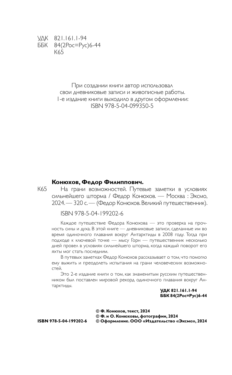 На грани возможностей. Путевые заметки в условиях сильнейшего шторма (Конюхов Фёдор Филиппович); ООО "Издательство "Эксмо", 2024