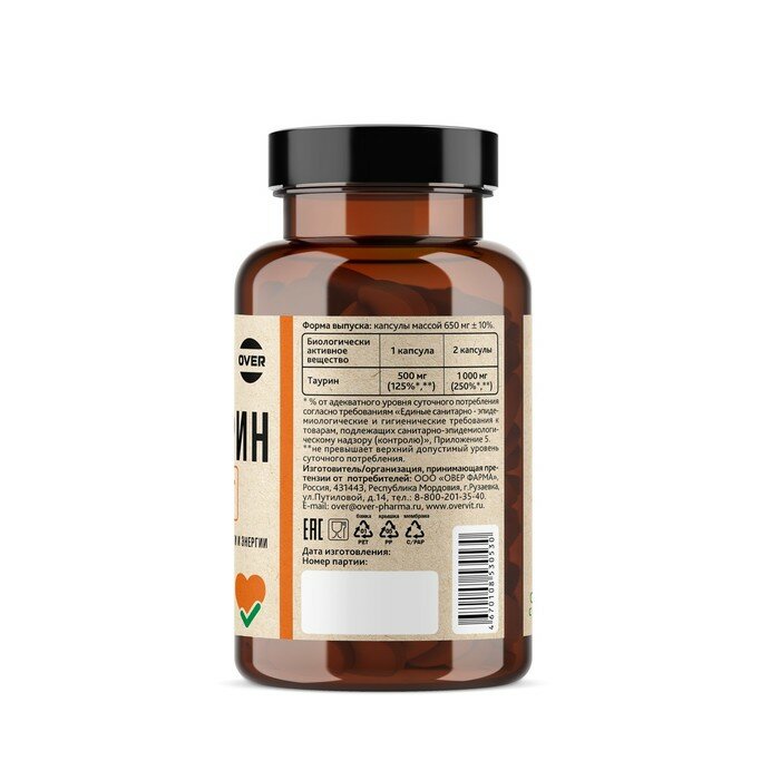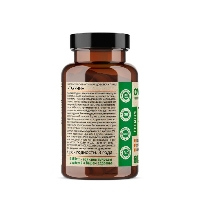 Таурин OVERvit/ОВЕРвит капсулы 60шт Over Pharma (2957642) (размер: Без размера)