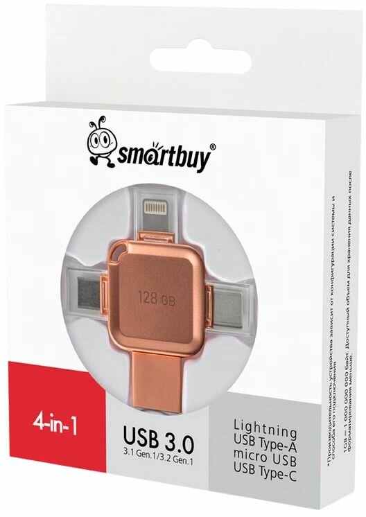 Накопитель USB 3.0 128GB SmartBuy MC15 Metal Quad 4-in-1 (Lightning + USB Type-A + USB Type-C + micro USB) серебро металл SB128GBMC15