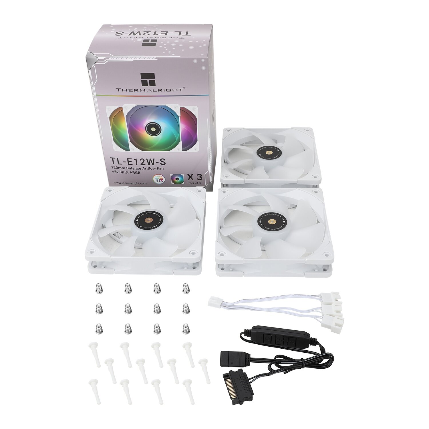 Вентилятор Thermalright TL-E12W-S x3, 120x120x25.6 мм, 1850 об/мин, 28 дБА, PWM, ARGB подсветка, 3 шт в упаковке