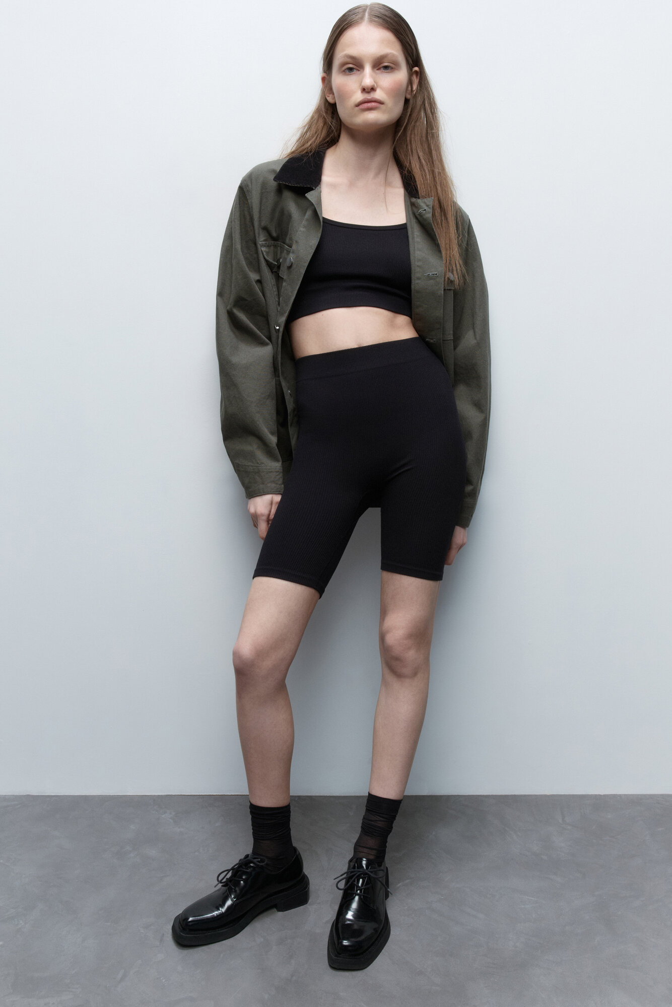 - Однотонные темно-серые / черные велосипедки для расслабленных летних образов