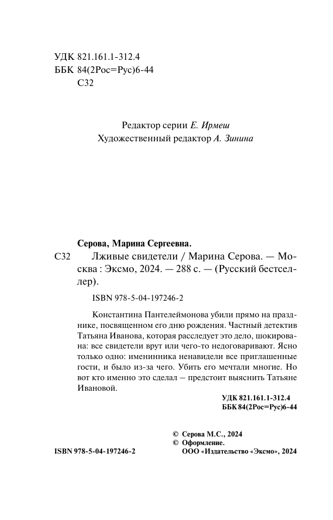 Книга: Лживые свидетели (Марина Сергеевна Серова); Эксмо, 2024