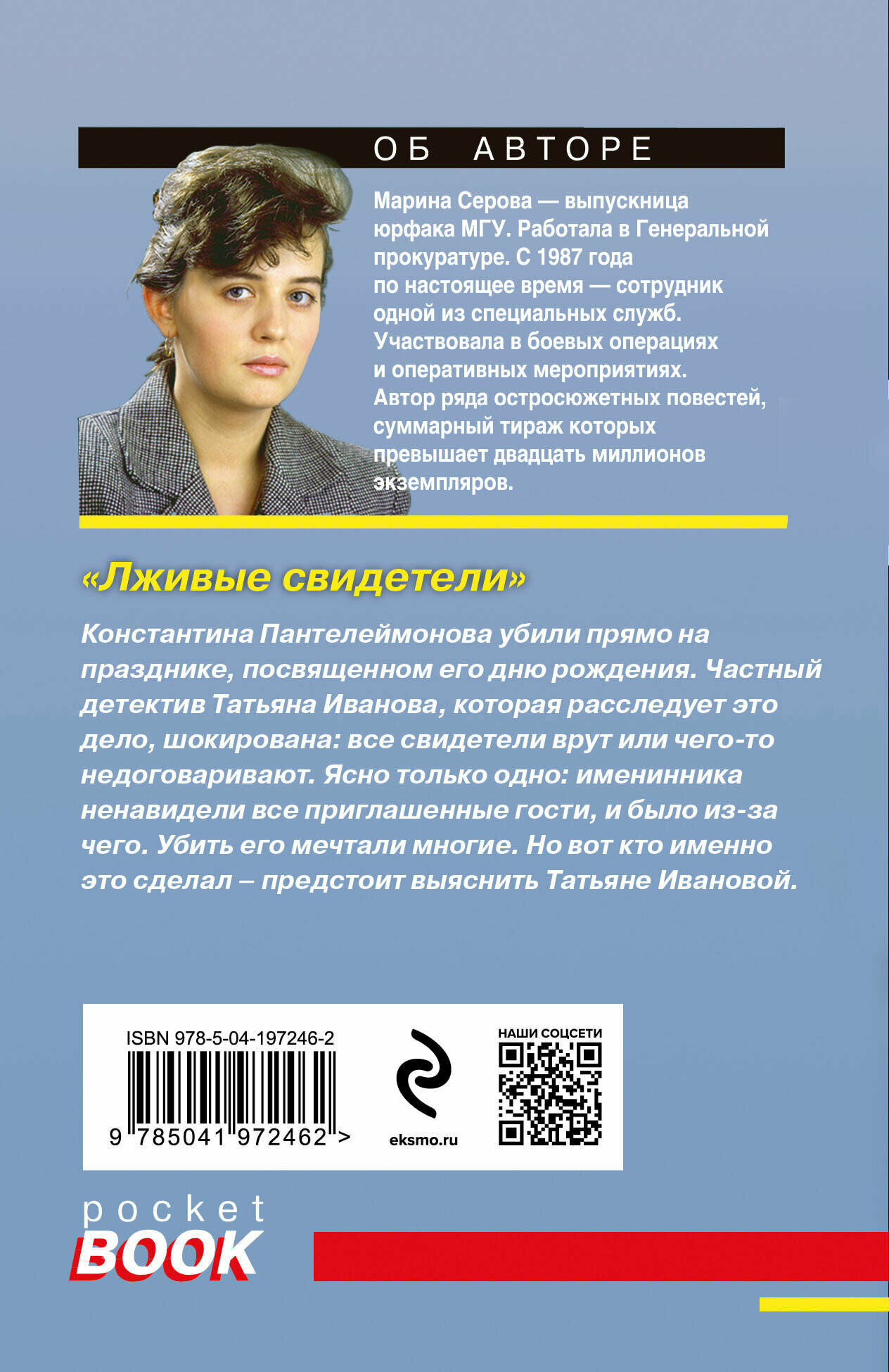 Константина Пантелеймонова убили прямо на празднике, посвященном его дню рождения. Частный детектив Татьяна Иванова, которая расследует это дело, шокирована: все свидетели врут или что-то недоговаривают. Ясно только одно: именинника ненавидели все приглашенные гости, и было из-за чего. Убить его мечтали многие. Но вот кто именно это сделал - предстоит выяснить Татьяне Ивановой. Марина Серова - феномен современного отечественного детективного жанра. Выпускница юрфака МГУ, работала в Генеральной прокуратуре. Участвовала в боевых операциях и оперативных мероприятиях. Автор ряда остросюжетных повестей, суммарный тираж которых превышает двадцать миллионов экземпляров.