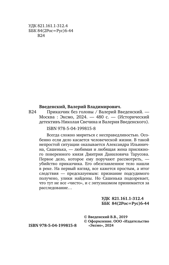 Книга: Приказчик без головы (Валерий Владимирович Введенский); Эксмо, 2024