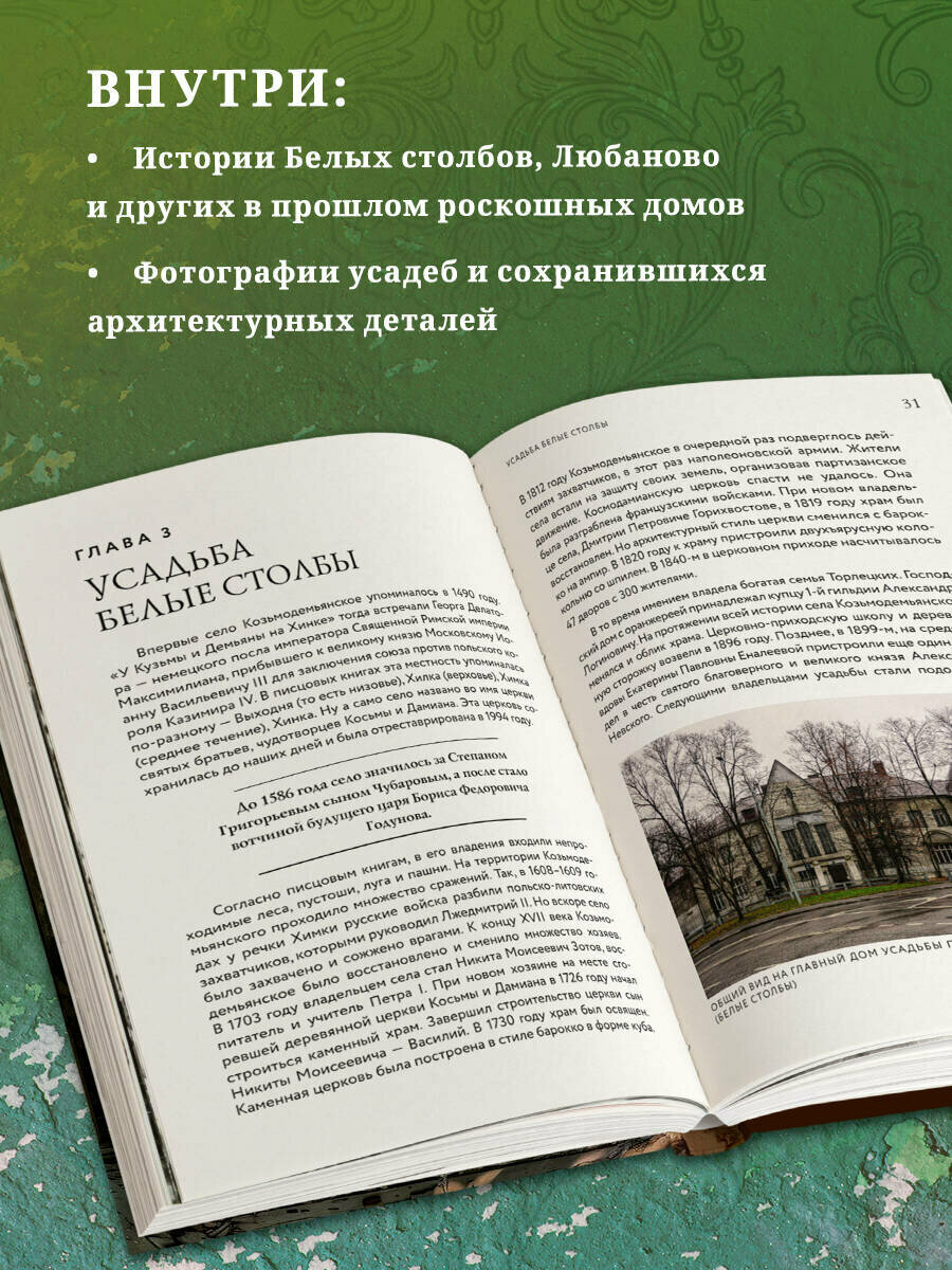Заброшенные усадьбы Подмосковья – хранители непростой истории ушедших лет и поколений. Когда-то в этих домах кипела жизнь, приезжали Чехов, Тютчев, Карамзин и другие известные в нашей истории личности. Знаменитые композиторы и художники праздно проводили вечера, а поэты посвящали этим местам стихи. Сейчас усадьбы медленно разрушаются, но все еще сохраняют былую красоту. Автор книги проводит нас сквозь века, рассказывая старые легенды, истории семей и древних городов на примере таких усадеб, как Михайловское, Белые столбы, Любаново и др. Это издание познакомит вас с бытом тех времен, а фотографии покажут, что даже в руинах эти здания остаются прекрасными.