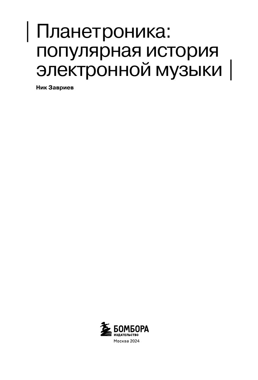 Не претендующий на научную объективность, но системный, последовательный и глубокий взгляд на историю электронной музыки, изложенный блестящим языком. Электронный музыкант, журналист, преподаватель Ник Завриев предлагает взглянуть на развитие электронной музыки как на ряд связанных друг с другом, но вместе с тем самобытных локальных культурных явлений — детройтское техно, миланское диско, роттердамский габбер, дюссельдорфский краутрок, бристольский трип-хоп. Книга написана при поддержке Яндекс Музыки, на платформе которой выходил одноименный подкаст “Планетроника”. 22 города, 22 стиля. Герои андеграунда и звезды мейнстрима. Захватывающие и вдохновляющие истории героев современной музыкальной культуры, которые из ничего создавали целые социальные движения. Книга "Планетроника: популярная история электронной музыки" входит в новую совместную серию "Бомборы" и Moscow Music School — школы современной музыки. Авторы книг серии — это преподаватели Moscow Music School: российские и зарубежные продюсеры, музыканты, звукоинженеры, состоявшиеся артисты, востребованные профессионалы и инсайдеры индустрии, готовые передать свой опыт новичкам.