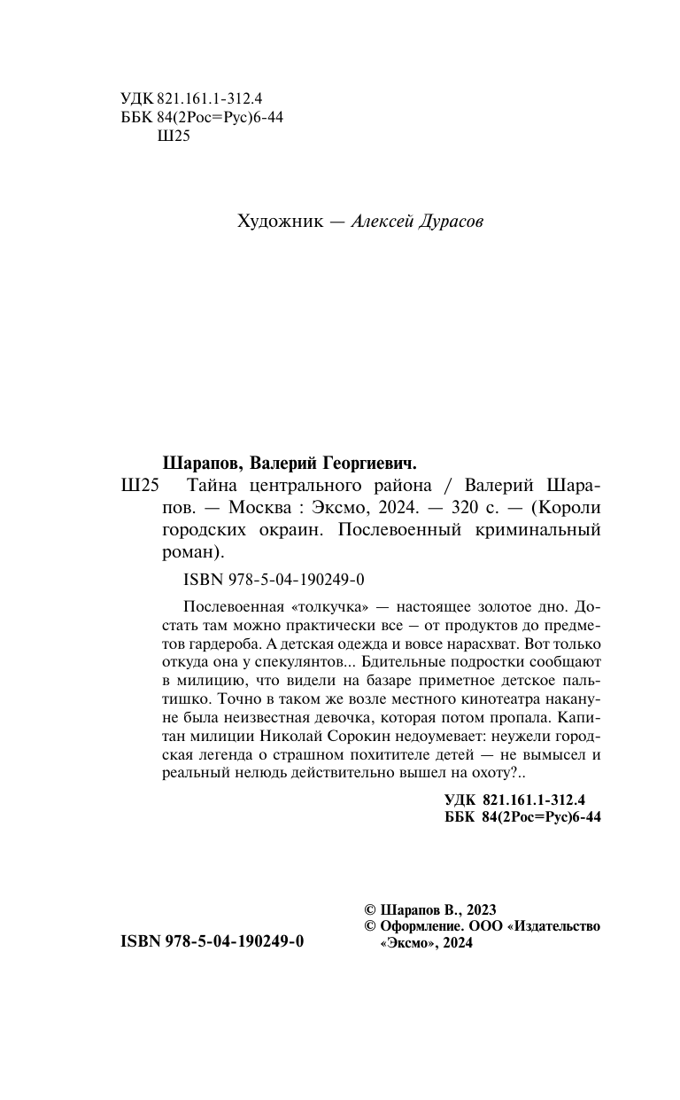 Тайна центрального района (Шарапов Валерий Георгиевич); ООО "Издательство "Эксмо", 2024