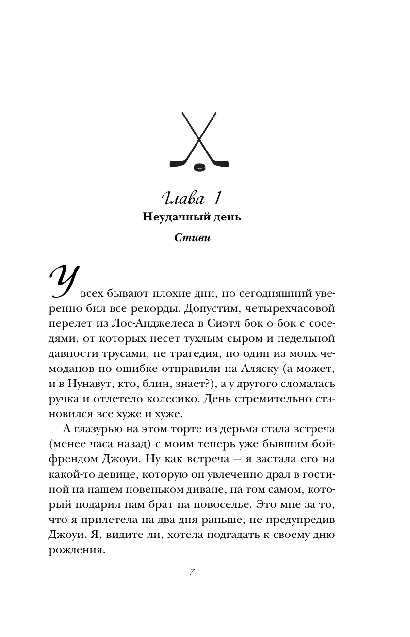 Единственный минус – это сосед напротив – нахал-красавчик, который любит разгуливать в нижнем белье, да еще и на дух не переносит ее брата. Впрочем, они оба – хоккеисты, и Стиви не удивлена их соперничеству.