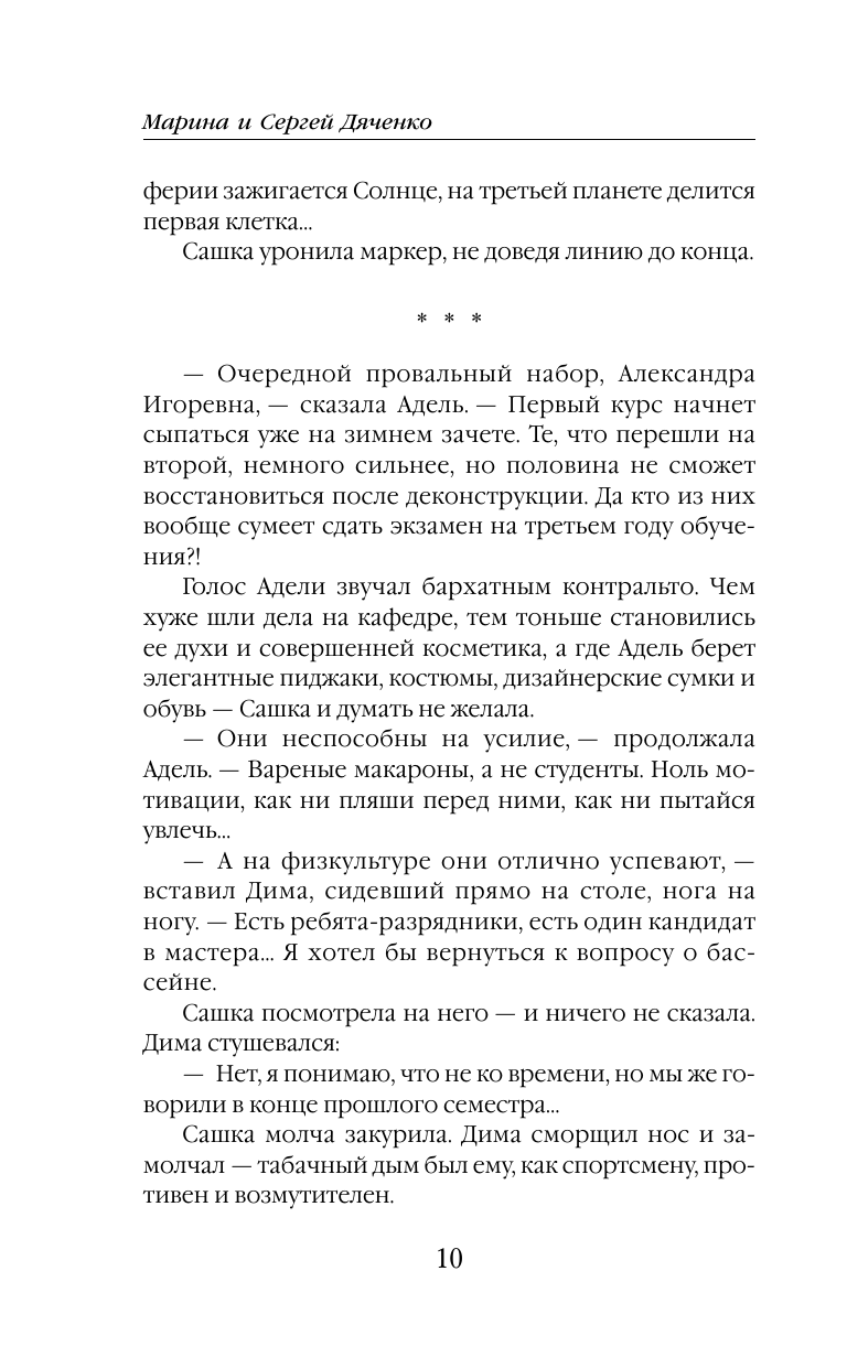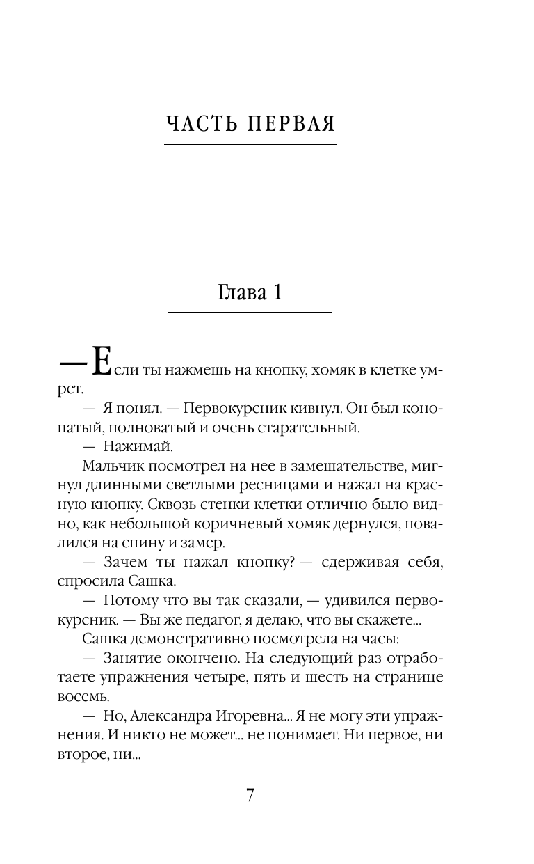 Сашка Самохина, когда-то испуганная первокурсница, становится всемогущим ректором Института специальных технологий. Когда-то она поражалась жестокости преподавателей – теперь сама не знает пощады. Когда-то она не верила, что будет убийцей реальности – теперь миру придет конец, если Сашка не соберет вовремя осколки, фрагменты своей прежней личности. Но все жертвы не напрасны.