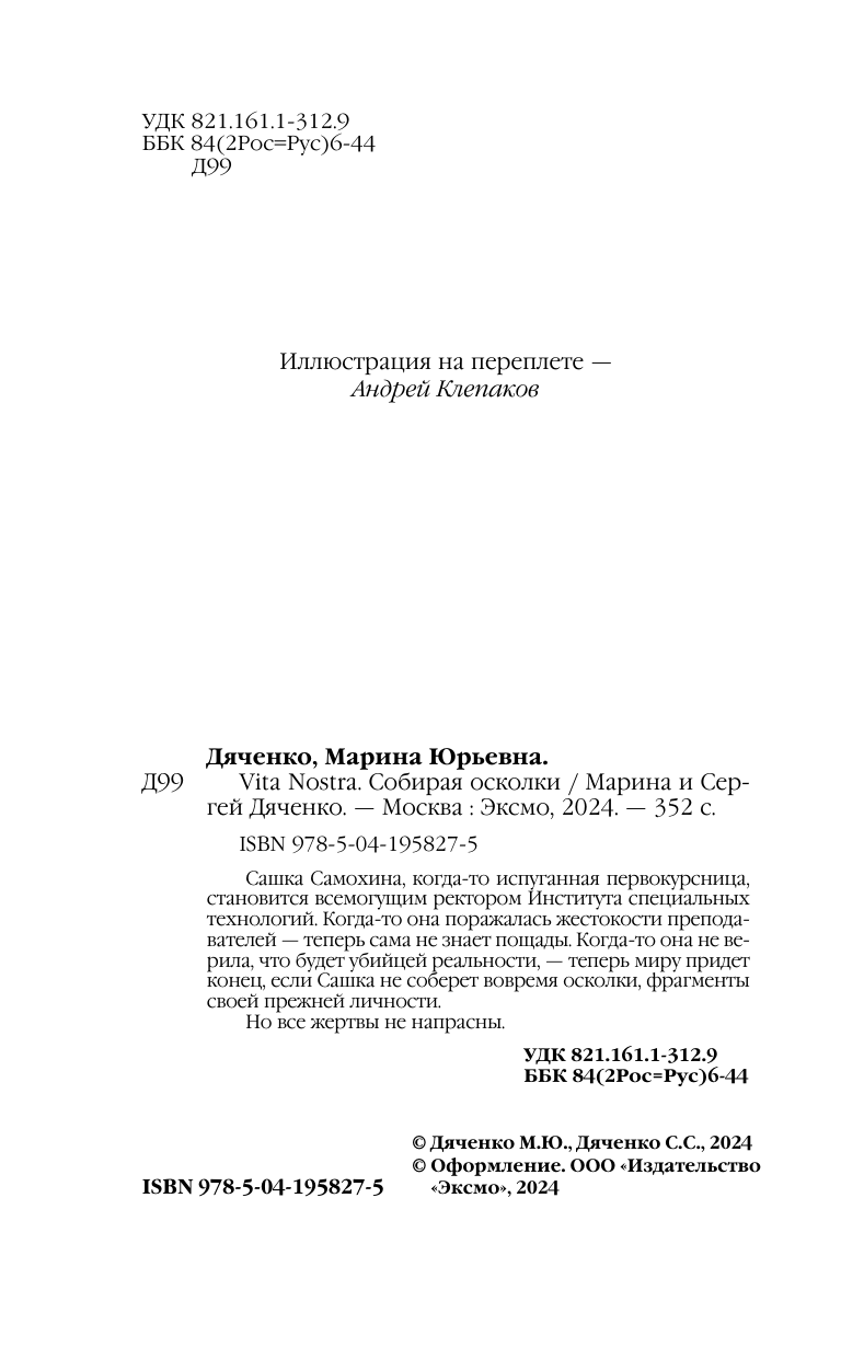 Vita Nostra: Собирая осколки (Дяченко Марина Юрьевна, Дяченко Сергей Сергеевич); ООО "Издательство "Эксмо", 2024