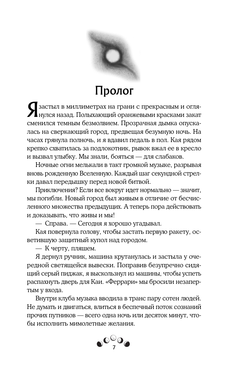 Три. Кто помнит, когда небеса стали оранжевыми? Когда пустота поглотила реальность и не оставила ничего взамен? Когда ученик демиурга наконец проснулся и начал творить миры... Два. Он создал двоих – мужчину с волчьей статью и девушку, ради которой стоит умирать в каждой из вселенных. Ворс и Кая, оборотень и охотница, капитан космического корабля и детектив, простой путник и разбойница, любимый и любимая. Они должны были стать простым экспериментом, но бросили вызов своему творцу. Один. С каждым разом сохранять жизнь становится все труднее. Но ради любви ведь стоит бороться? И побег от пустоты начнется. Сейчас.