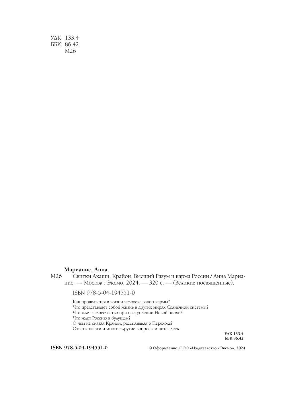 Свитки Акаши. Крайон Высший Разум и карма России (Марианис Анна); ООО "Издательство "Эксмо", 2024