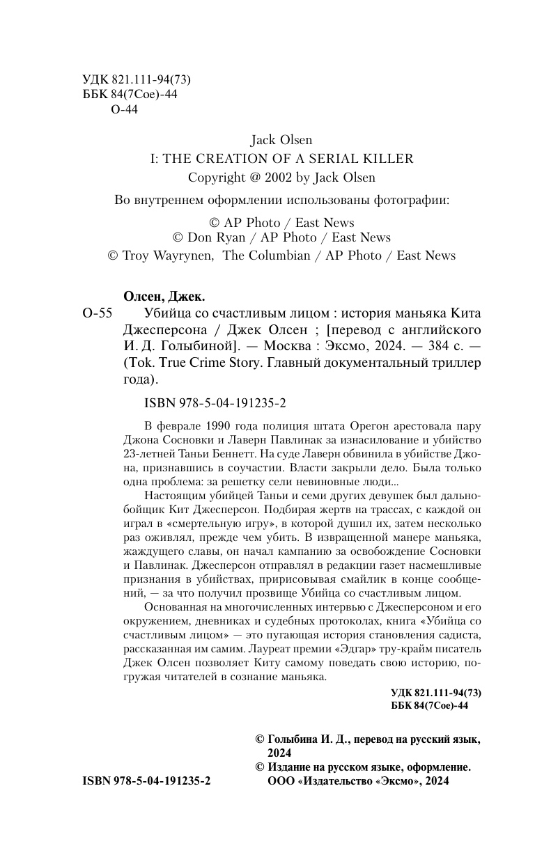Убийца со счастливым лицом. История маньяка Кита Джесперсона (Джек Олсен); Эксмо, 2024
