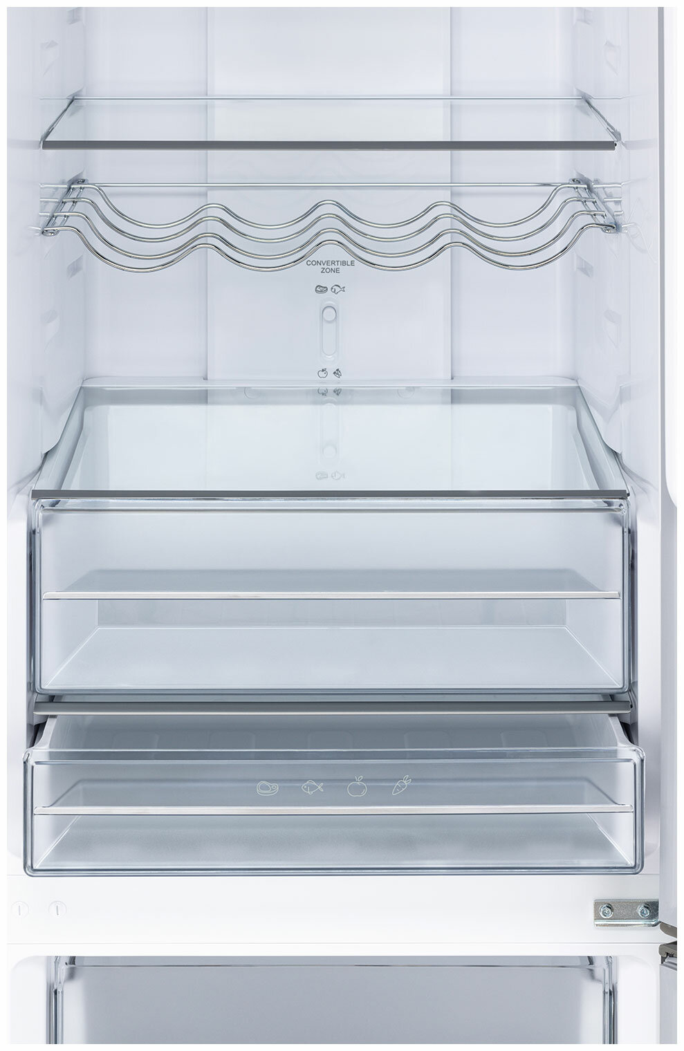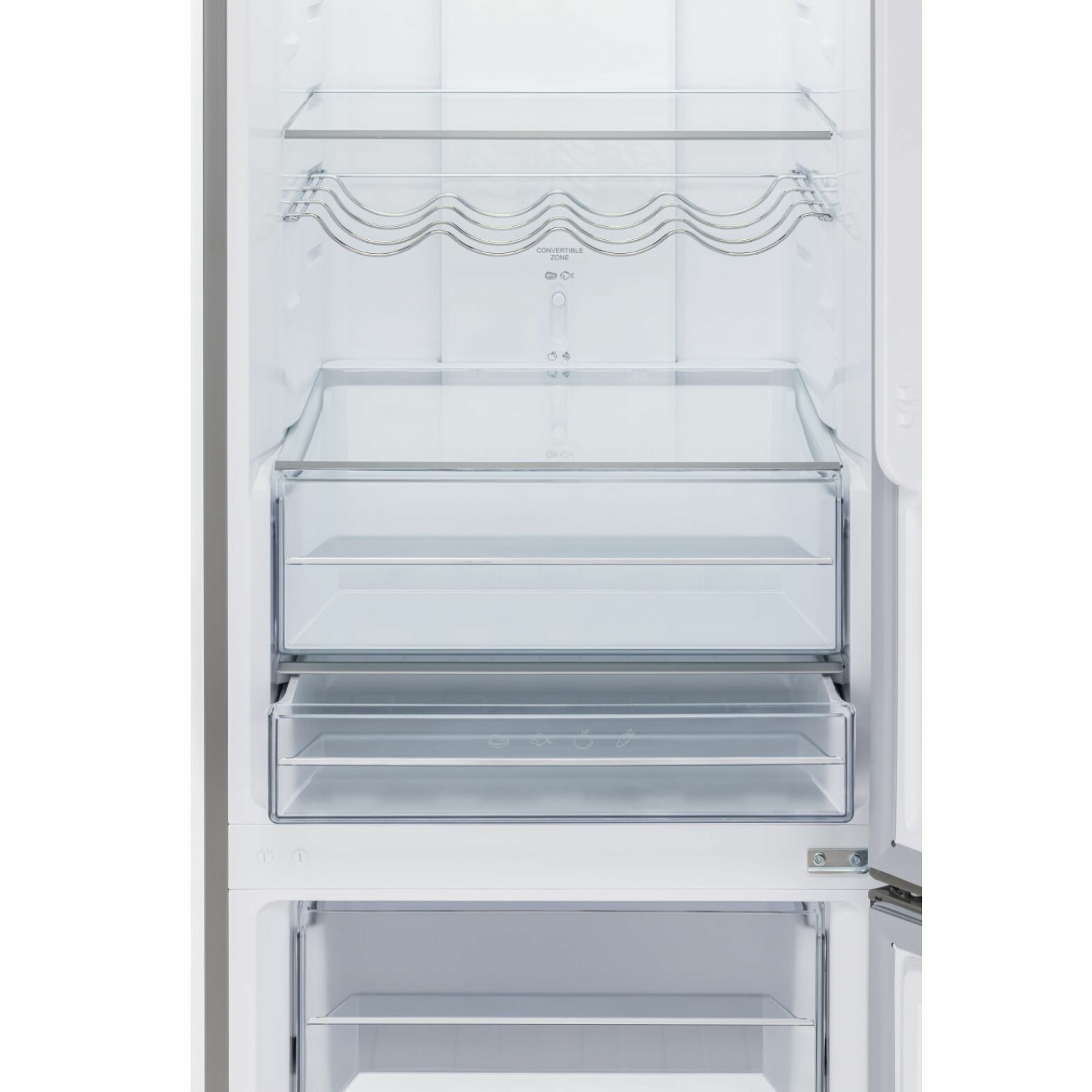 Двухкамерный холодильник VARD VRC195NI с нижней морозильной камерой сочетает в себе премиальный дизайн и передовые технологии. Холодильник с системой Full No Frost не требует размораживания морозильной камеры. Потоки воздуха внутри камеры распределяются равномерно, исключая перепады температур внутри прибора. Convertible Zone представляет собой расположенное в нижней части холодильника отделение. Оно может использоваться для продуктов, требующих особых условий хранения.