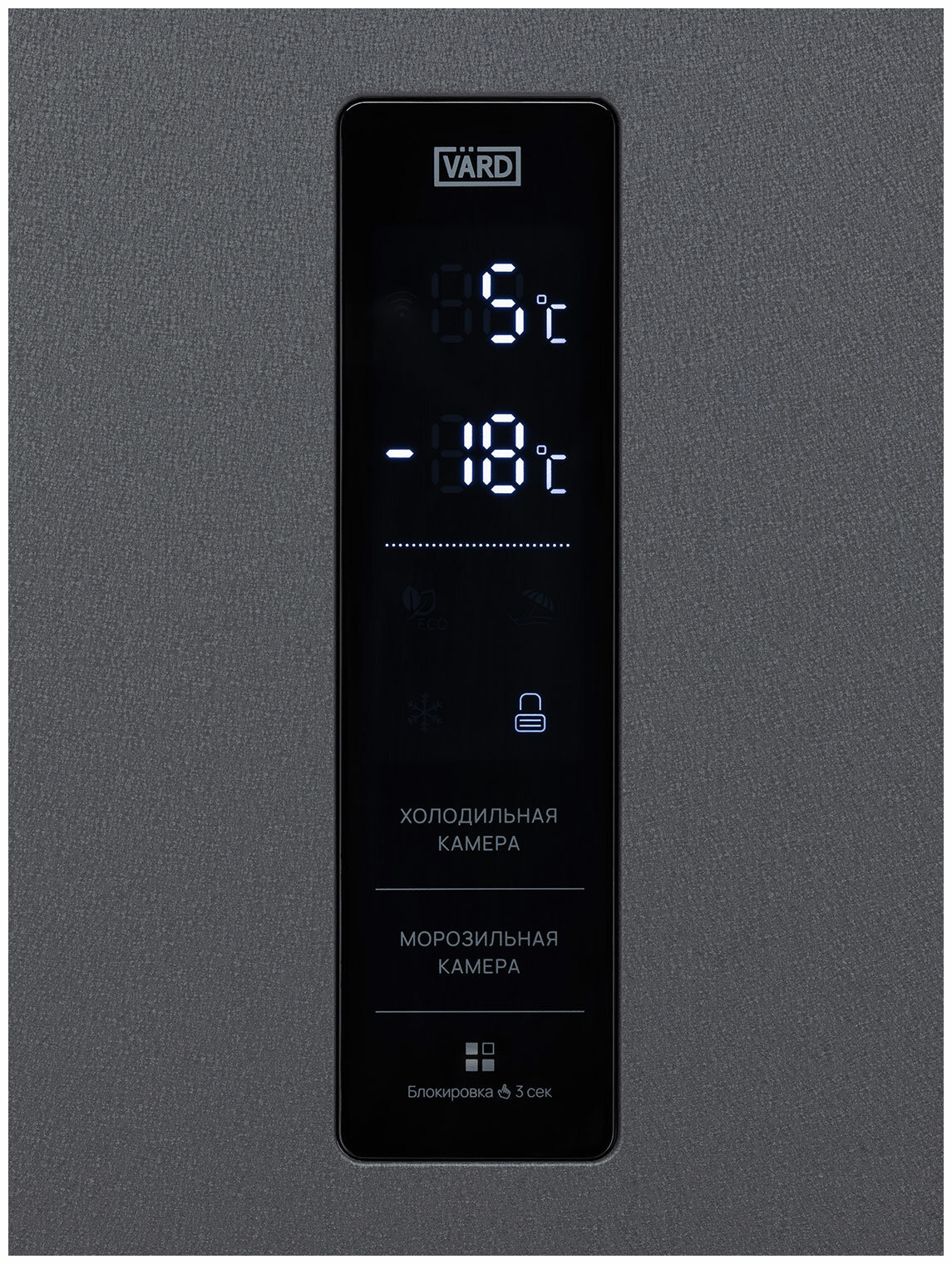 Холодильник двухкамерный VARD VRC195NI тёмно-серый общий объем 382 л инверторный компрессор сенсорный дисплей