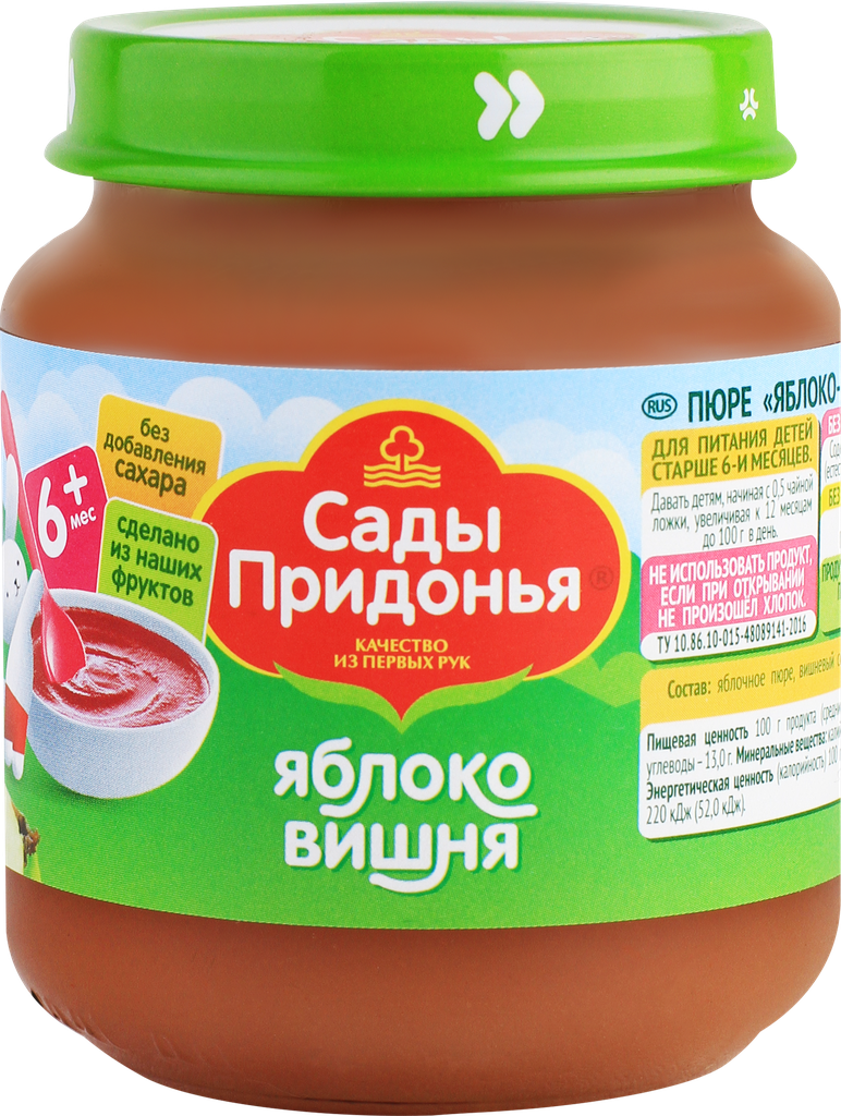 | Наименование модели | Сады Придонья Яблоко - вишня (с 6 месяцев) стеклянная банка 120 г |